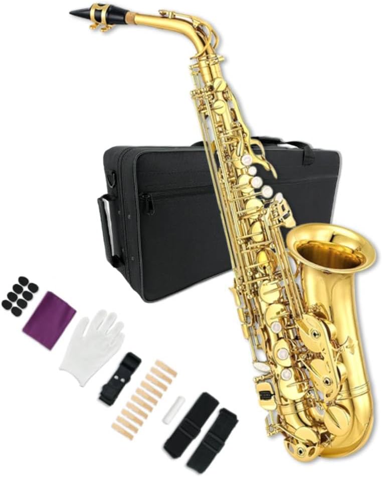 Complete Set: The alto saxophone kit includes an alto saxophone, mouthpiece, straps, reeds, pad cushions, and a carry case, providing everything needed to start practicing right away.