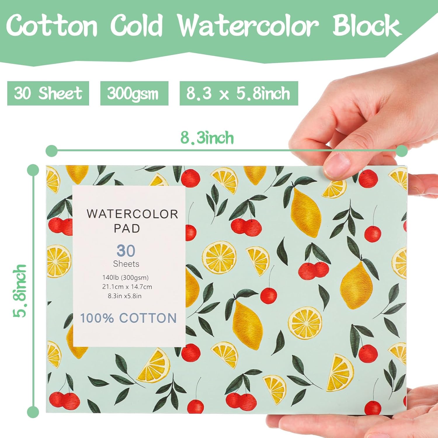 【30 Sheets Watercolor Paper】A watercolor notebook with 30 sheets, size 8.3×5.8 inches, paper weight 140 lb/300gsm, easy to carry, can meet your various painting needs at anytime and anywhere.