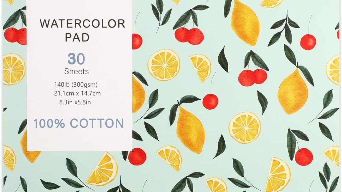 30 Sheets Watercolor Paper Pad, A5 (8.3 x 5.8) Cold Press Watercolor Paper, 140 lb/300 GSM Tearable Water Color Pad for Art Painting, Drawing, Mixed Media, Stocking Stuffers