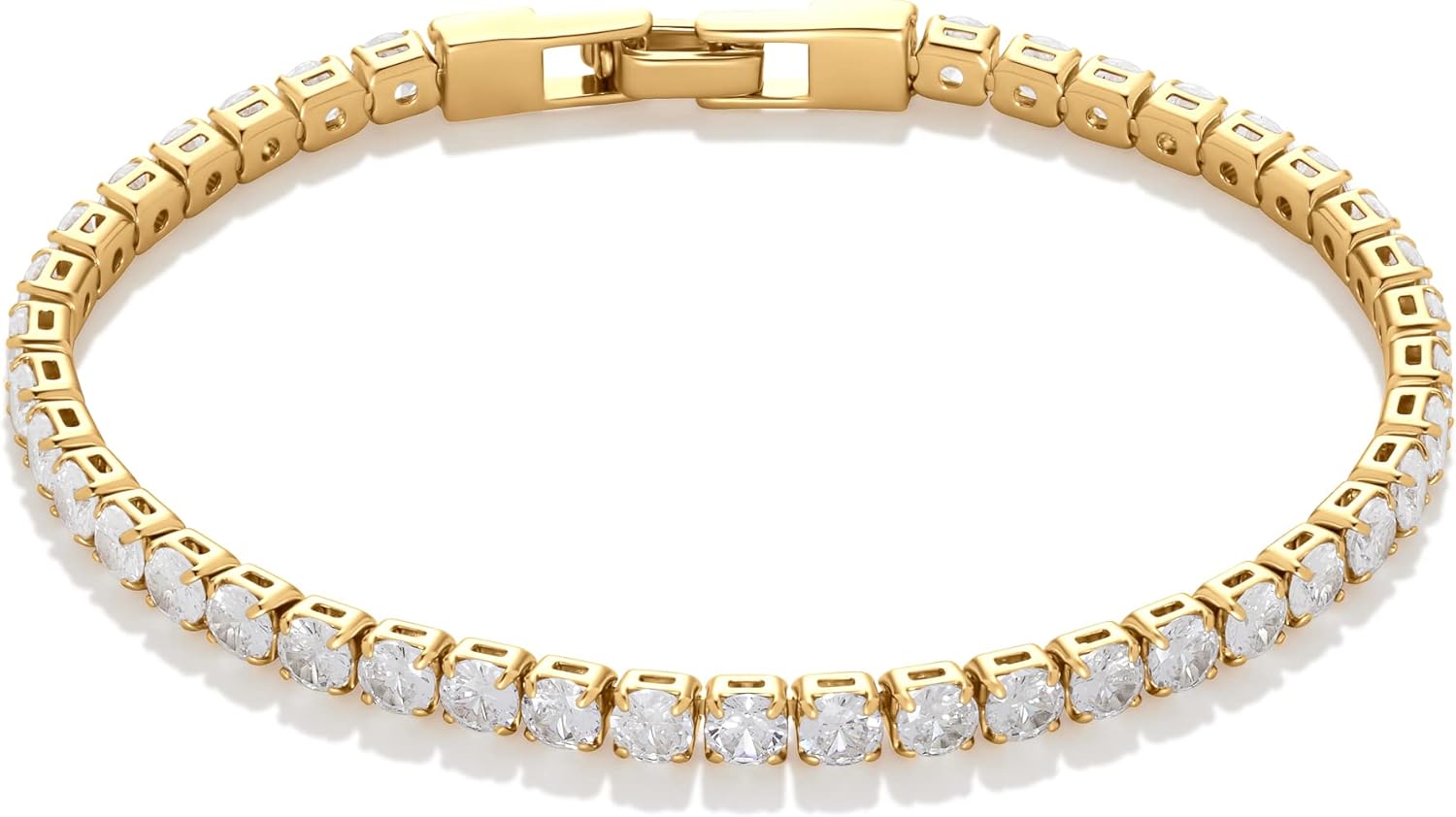 Amazon Essentials 14K Gold or Sterling Silver Plated Cubic Zirconia Tennis Bracelet 7.5″