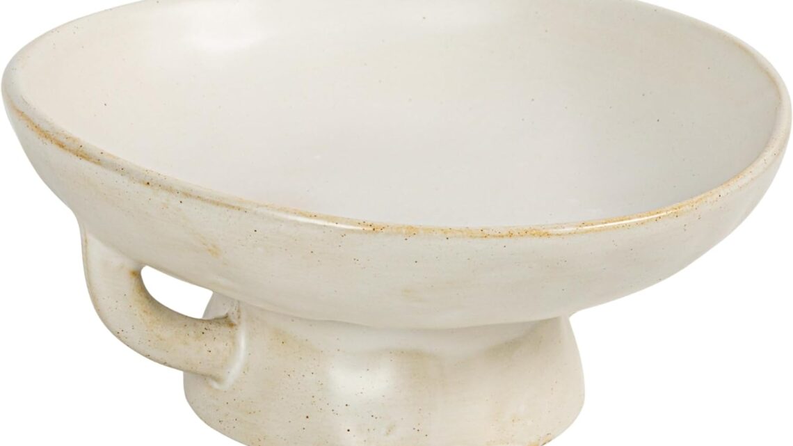 This beautiful bowl is a stylish addition to any kitchen. Made out of stoneware, this footed bowl features a white reactive glaze finish. Perfect for placing on kitchen counters, filling with fresh fruits or everyday items, and eating in style