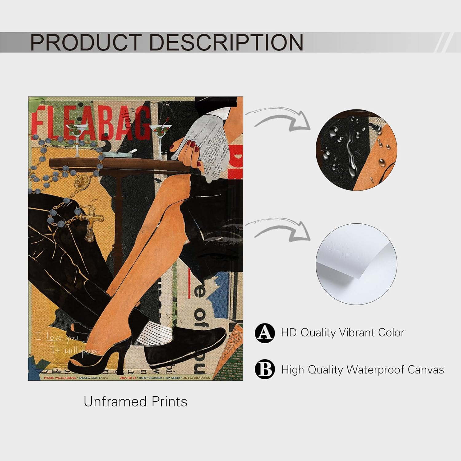 Fleabag Poster :Retro posters size is 12x16in not include frames. You to choose your preferred frames to showcase them.