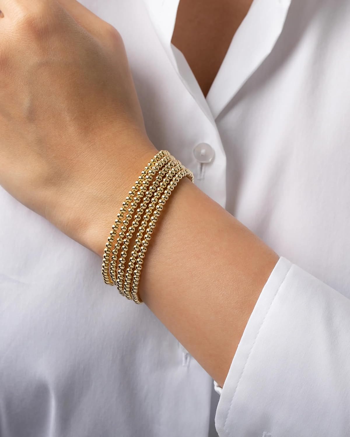 Elegance 11 designs 14K Gold Plated Bead Ball Bracelet Stretchable Elastic Gold Beaded Bracelets for Women