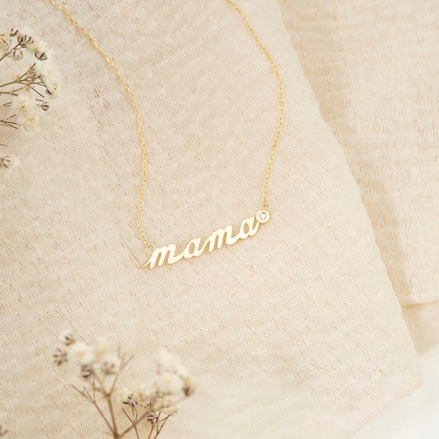 GELIN Diamond Mama Pendant Necklace in 14K Solid Gold | Gifts for Mother’s Day, 18″
