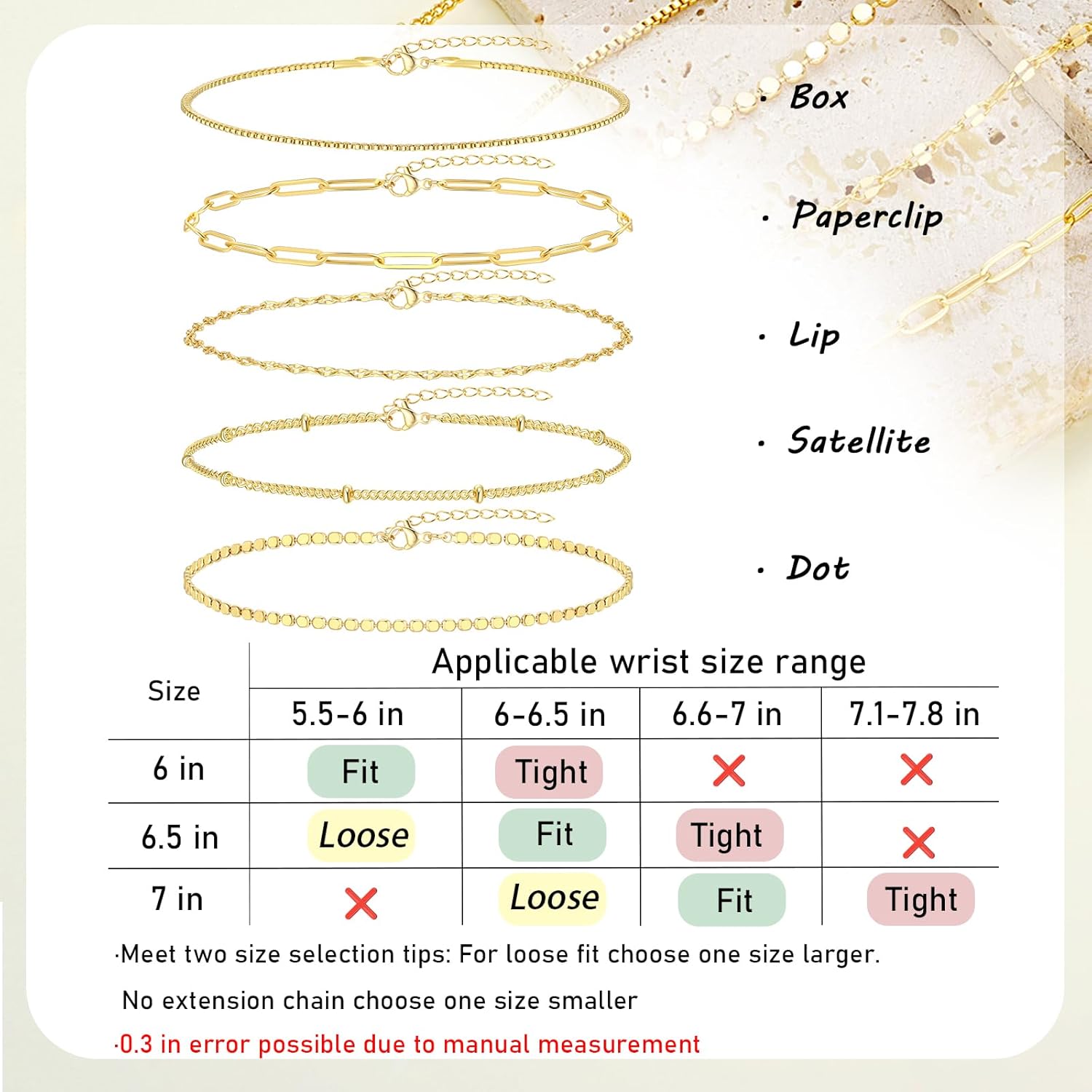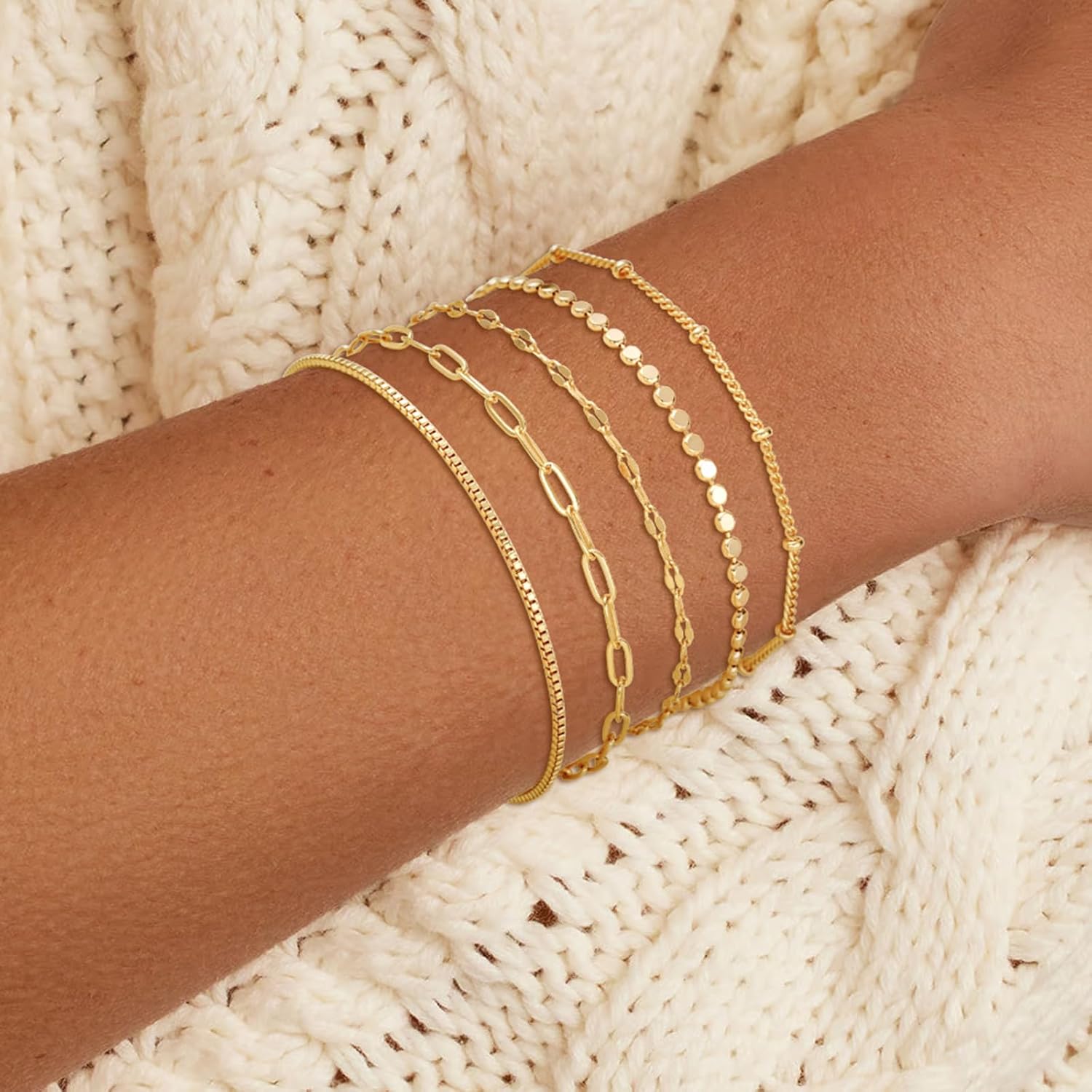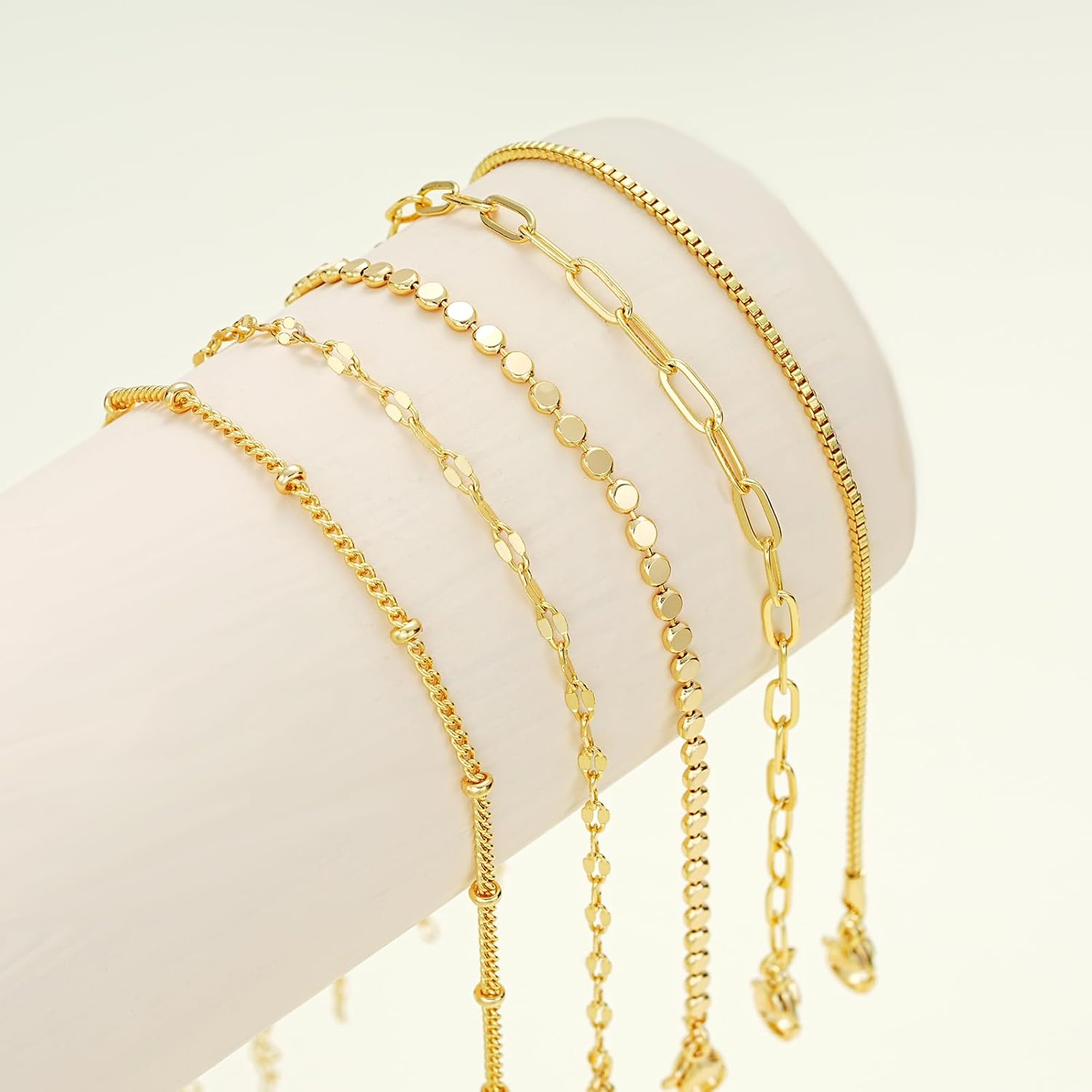 Gold Bracelets for Women, Trendy Adjustable 14K Gold Plated Stackable Link Bracelet, Dainty Thin Paperclip Chain Bracelets Stack Set