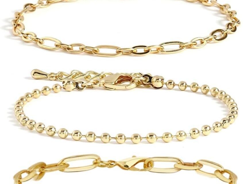 Gold Chain Bracelet For Women,14K Gold Plated Link Dainty Bracelets Stake Adjustable Layered Bracelet Set Hypoallergen Gold Jewelry