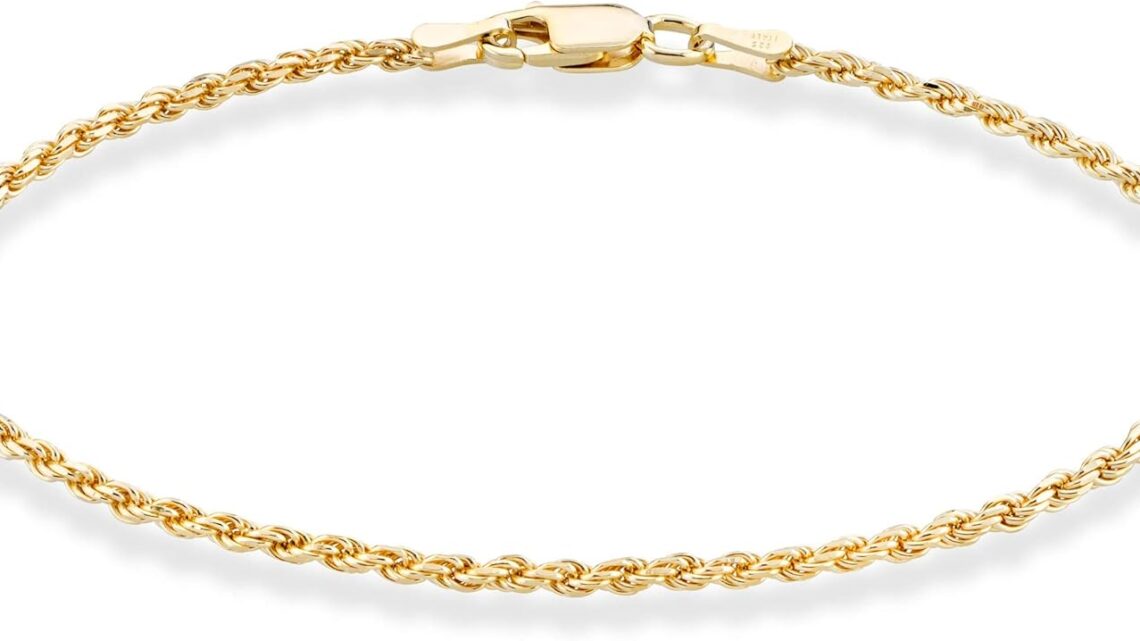 Miabella 18K Gold Over Sterling Silver Italian 2mm, 3mm Diamond-Cut Braided Rope Chain Bracelet for Men Women, Solid 925 Made in Italy