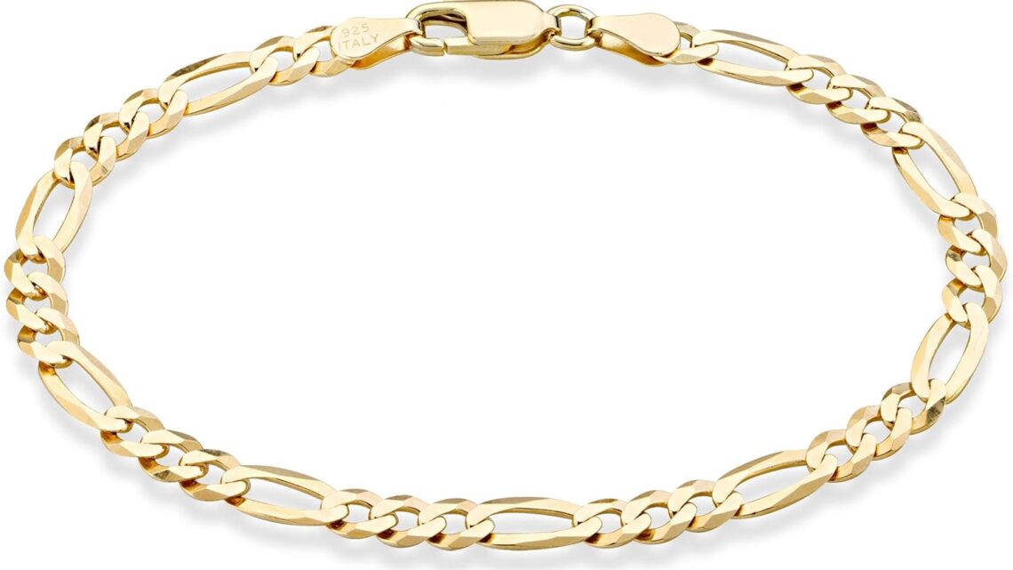 Miabella Solid 18K Gold Over Sterling Silver Italian 5mm Diamond-Cut Figaro Chain Bracelet for Women Men, 925 Made in Italy