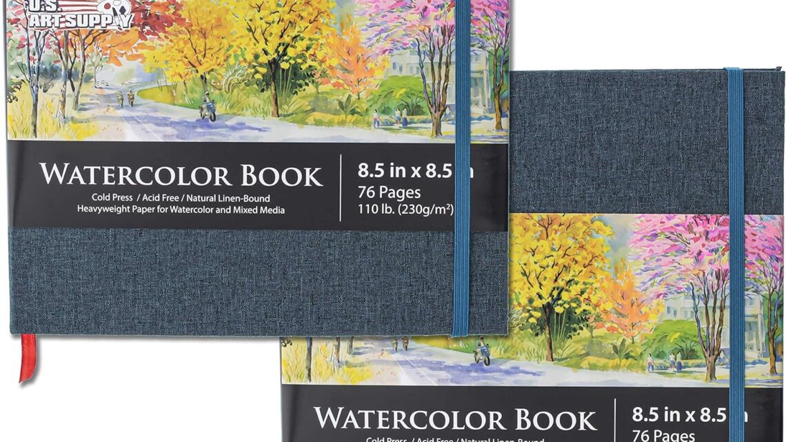 U.S. Art Supply 8.5″ x 8.5″ Watercolor Book, 2 Pack, 76 Sheets, 110 lb (230 GSM) – Linen-Bound Hardcover Artists Paper Pads – Acid-Free, Cold-Pressed, Brush Painting & Drawing Sketchbook Mixed Media