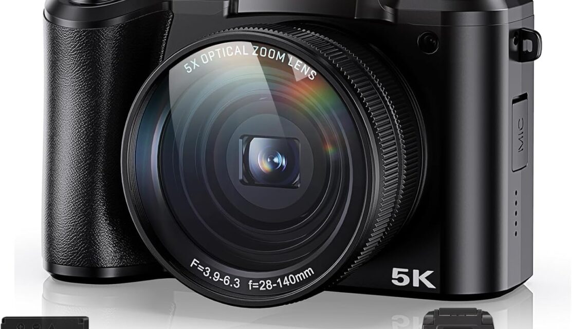 5K Digital Camera 5X Optical Zoom Cameras for Photography, 64MP Front and Rear Dual Cameras Vlogging Camera for YouTube Video with 3.2″ IPS Touchscreen, 6-Axis Stabilization, 64G TF Card, 2 Batteries