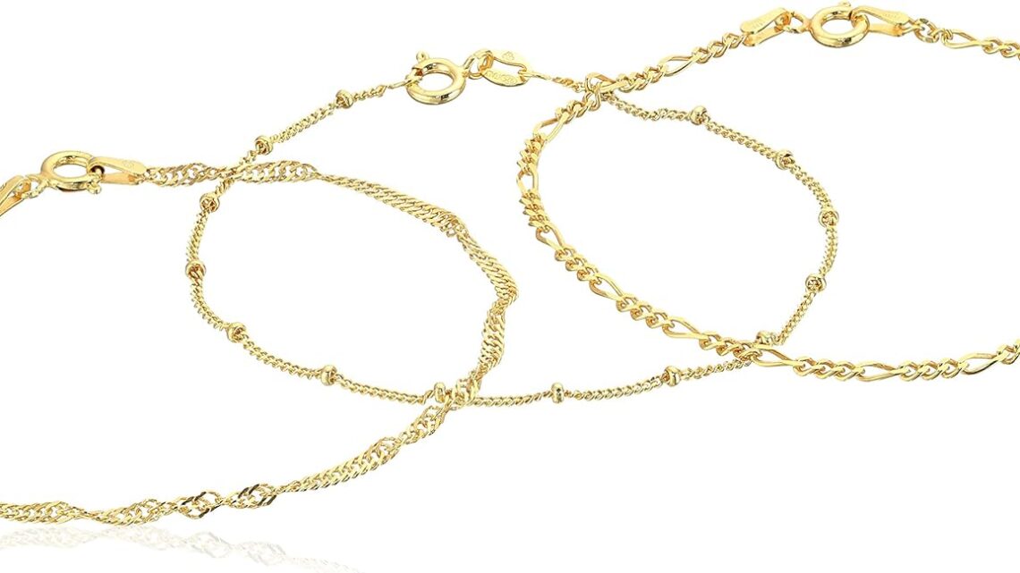 Amazon Essentials Set of Three Singapore, Figaro and Bead Station Chain Bracelet (previously Amazon Collection)