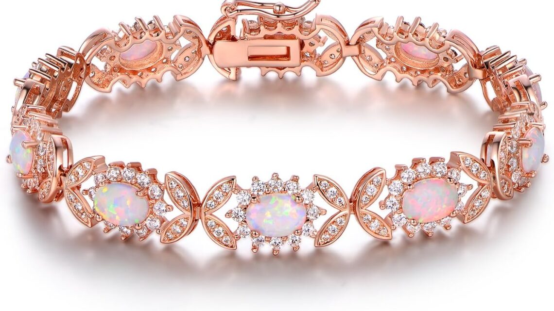 Barzel 18K White Gold or Rose Gold Plated Created Opal Tennis Bracelet