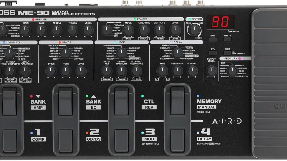 With its knob-driven interface and diverse effects selection, the ME-90 lets you build configurations and tweak tones with the ease of a stompbox-filled pedalboard—without the hassle of fastening tape, power distribution, and multiple connection cables. Just dial up an amp model or effect type within a category and turn the knobs to get the sound you want. There are 36 preset patches with ready-to-play pro tones, plus 36 user patches for storing your custom creations.