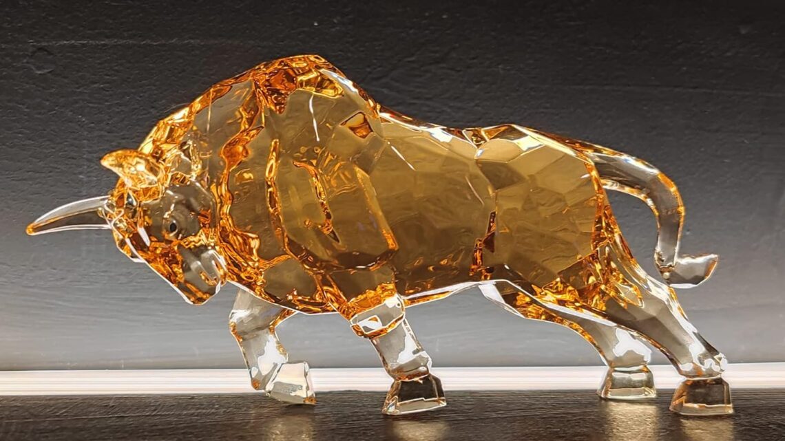 FengShui Wall Street Bull Statue Acrylic Bull Figurine Sculpture Home Office Desk Decorative Ornament 8.7”L (Amber)