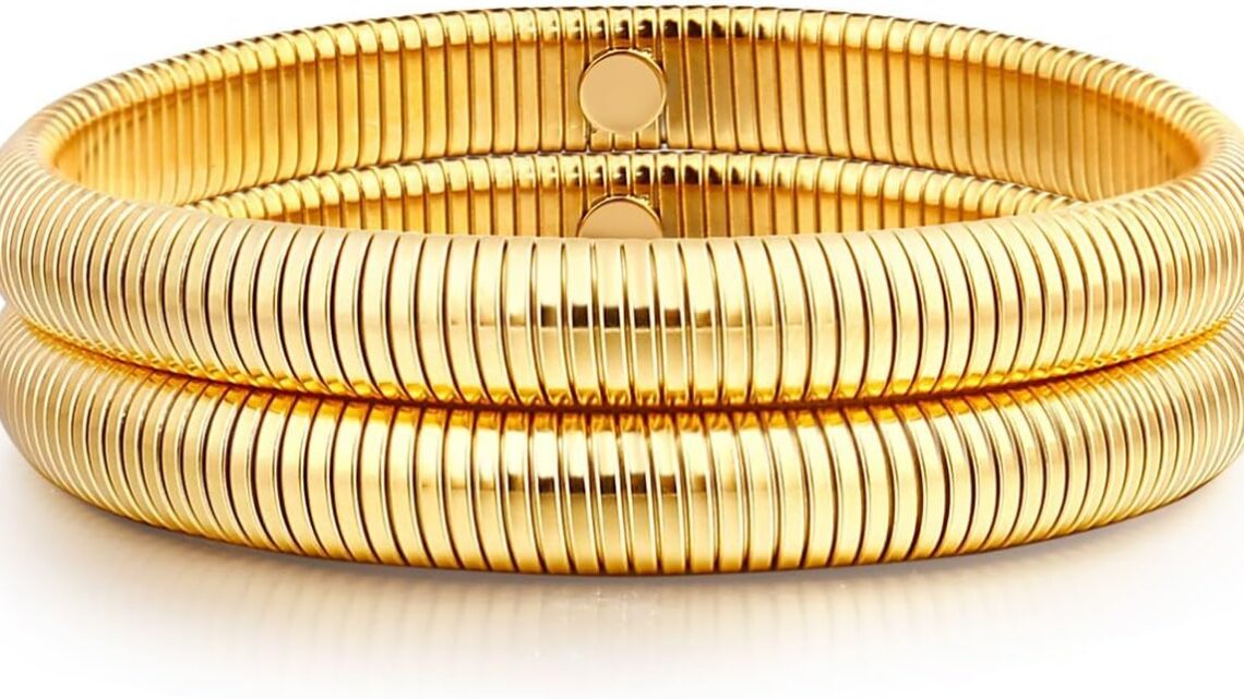 Gold Bangle multi-layer Bracelets for Women Stretchy Stainless steel Link Chain Flexible Wide Wristband Bracelets