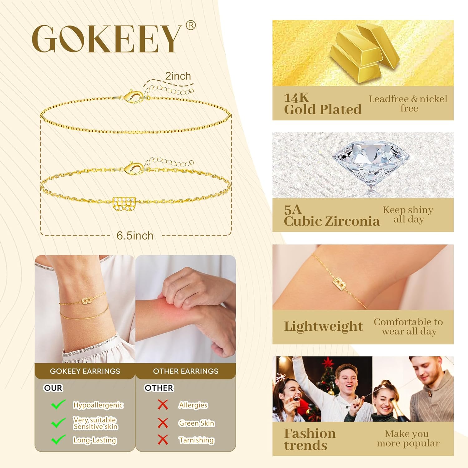 Gold Initial Bracelets for Women, Dainty 14K Gold Plated Letter Initial Bracelet for Women, Cute Layered Box Chain Gold Bracelets for Women Trendy Jewelry
