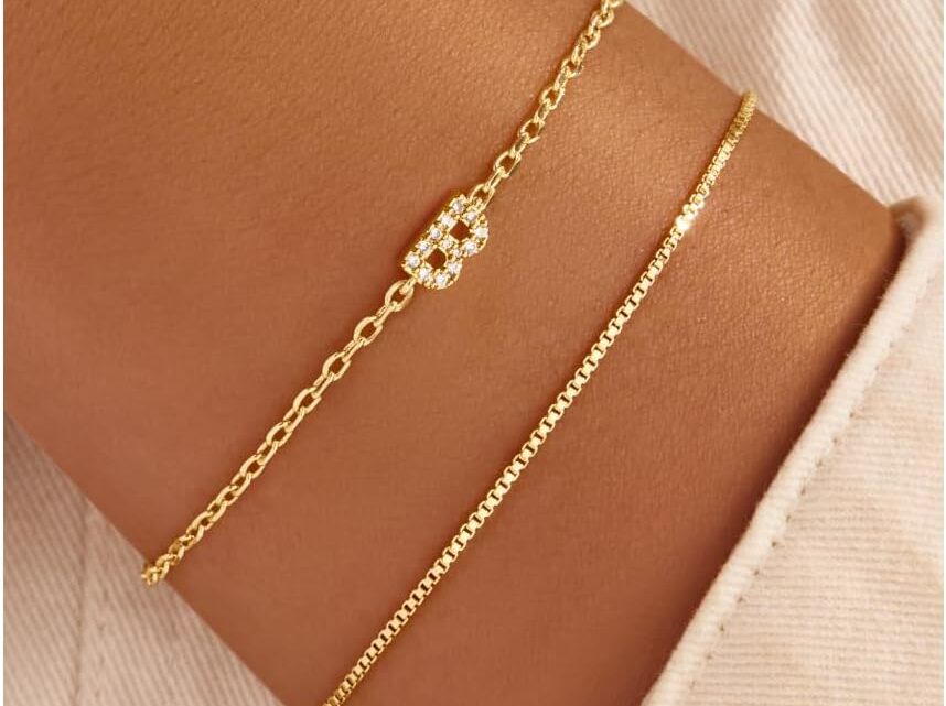 Home » Gold Initial Bracelets for Women, Dainty 14K Gold Plated Letter Initial Bracelet for Women, Cute Layered Box Chain Gold Bracelets for Women Trendy Jewelry