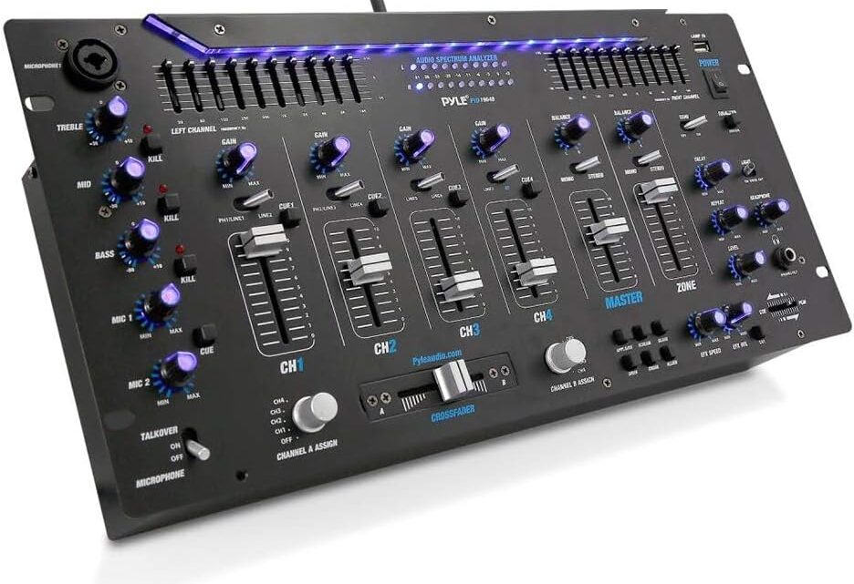 Pyle 6 Channel Mixer DJ Controller with Bluetooth, Professional Sound Digital Mixing System with LED Illumination, Slider Controls, Speed Control, 10 Band Equalizer 5U Rack Mount System