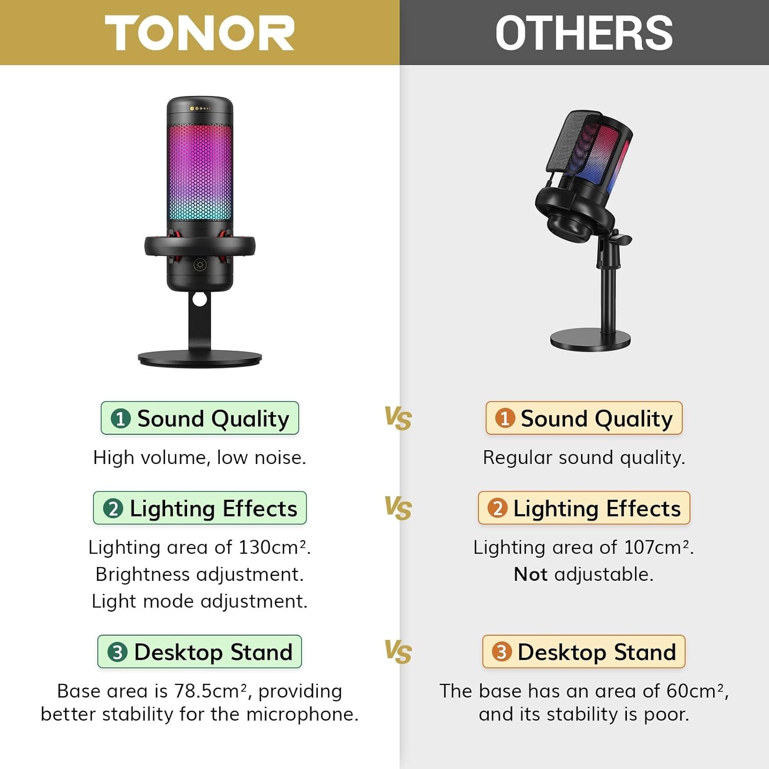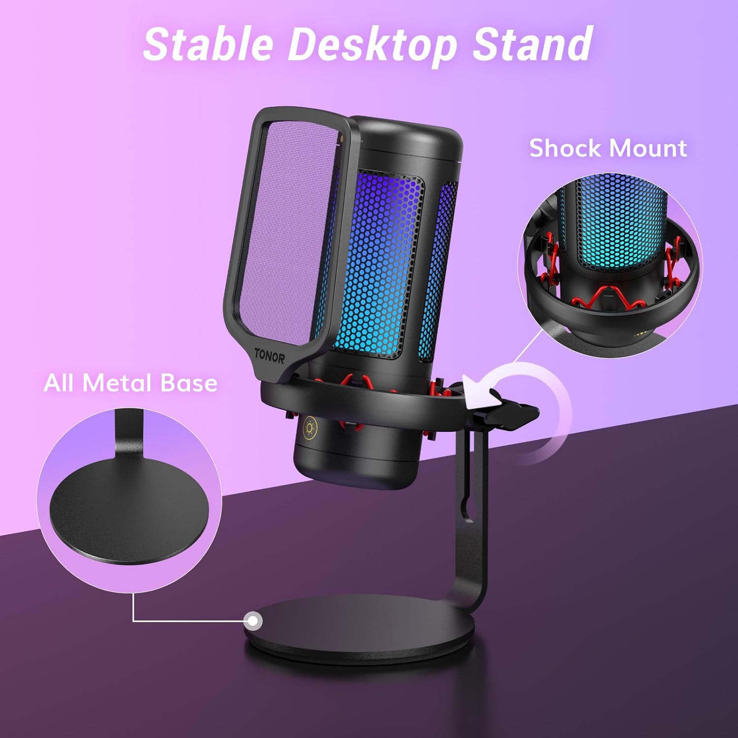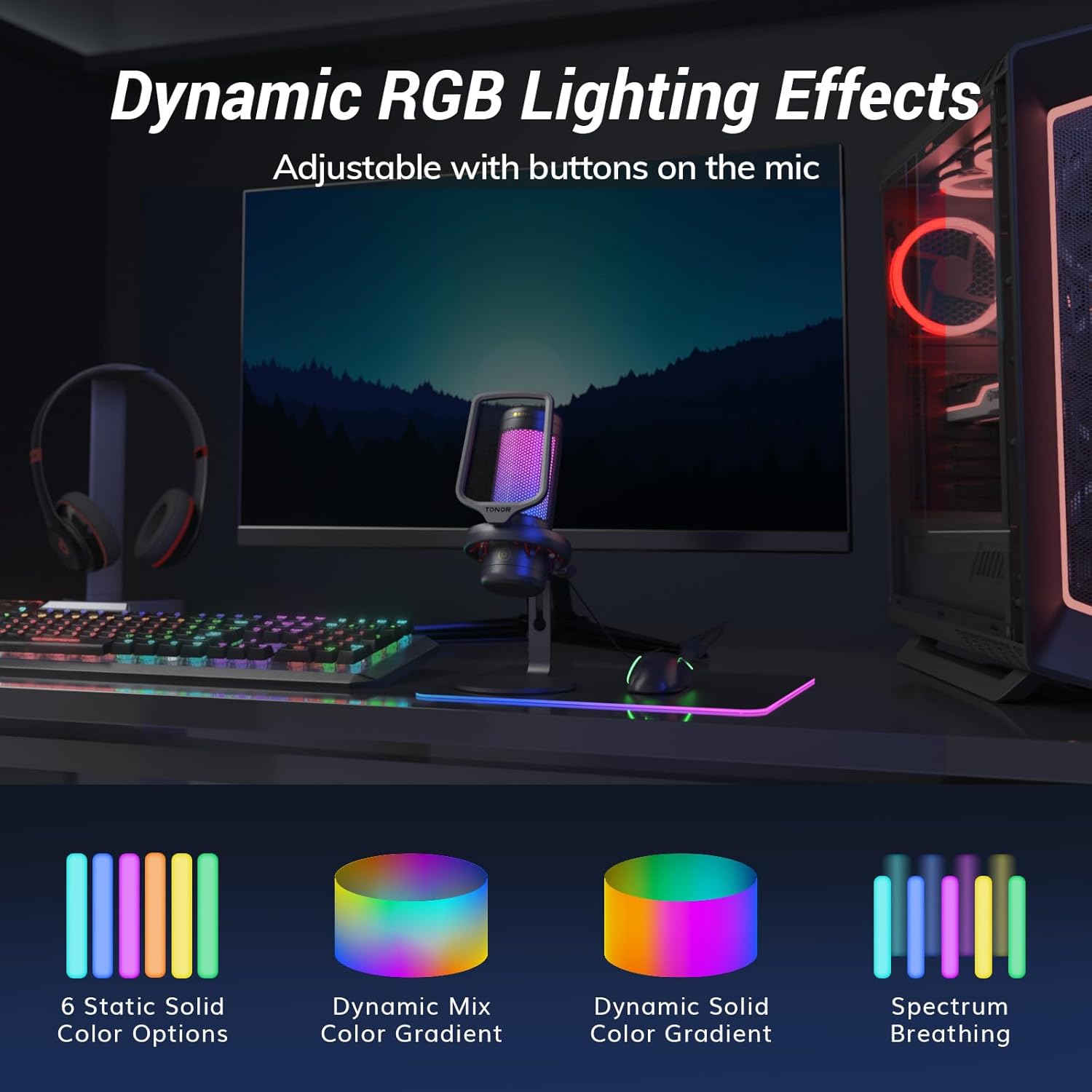 TONOR TC320 Gaming Mic, USB Microphone with RGB/Gain Control, Mute Touch for Streaming, Podcasts, Recording, Twitch/YouTube/Discord, Condenser Computer PC Mic with Stand on Mac/PS4/PS5/NS Black