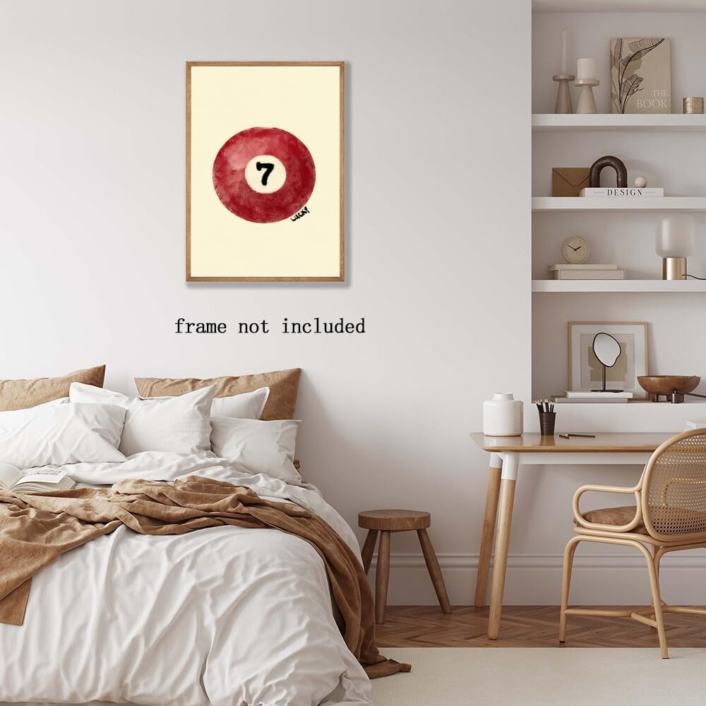 Vintage Cool Girl Posters Red Lucky Number 7 Wall Art Pool Ball Print Retro Aesthetic Trendy Y2K Room Decor Game Funky Canvas Wall Decor for Apartment 8x12inch Unframed