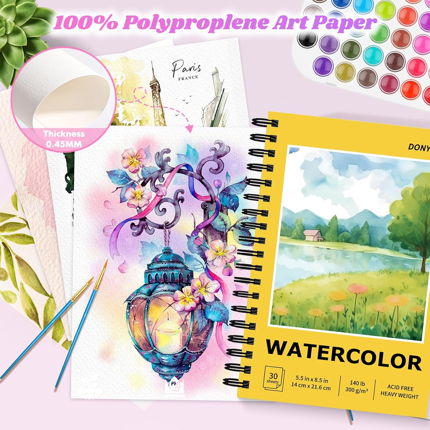 Watercolor Paper Pad, 5.5″x8.5″ Water Color Paper, 140lb/300gsm Artist Painting Drawing Paper Book, Art Supplies for Kids Adults, Watercolors, 3 Pack Watercolor Paint Set, Sketchbook, Journal, Yellow
