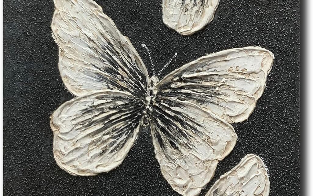 High quailty:Off-white butterfly with black background.100% Paintbrush/Knife hand-painted,oil on canvas painting.Totally handmade by our professional artists.
