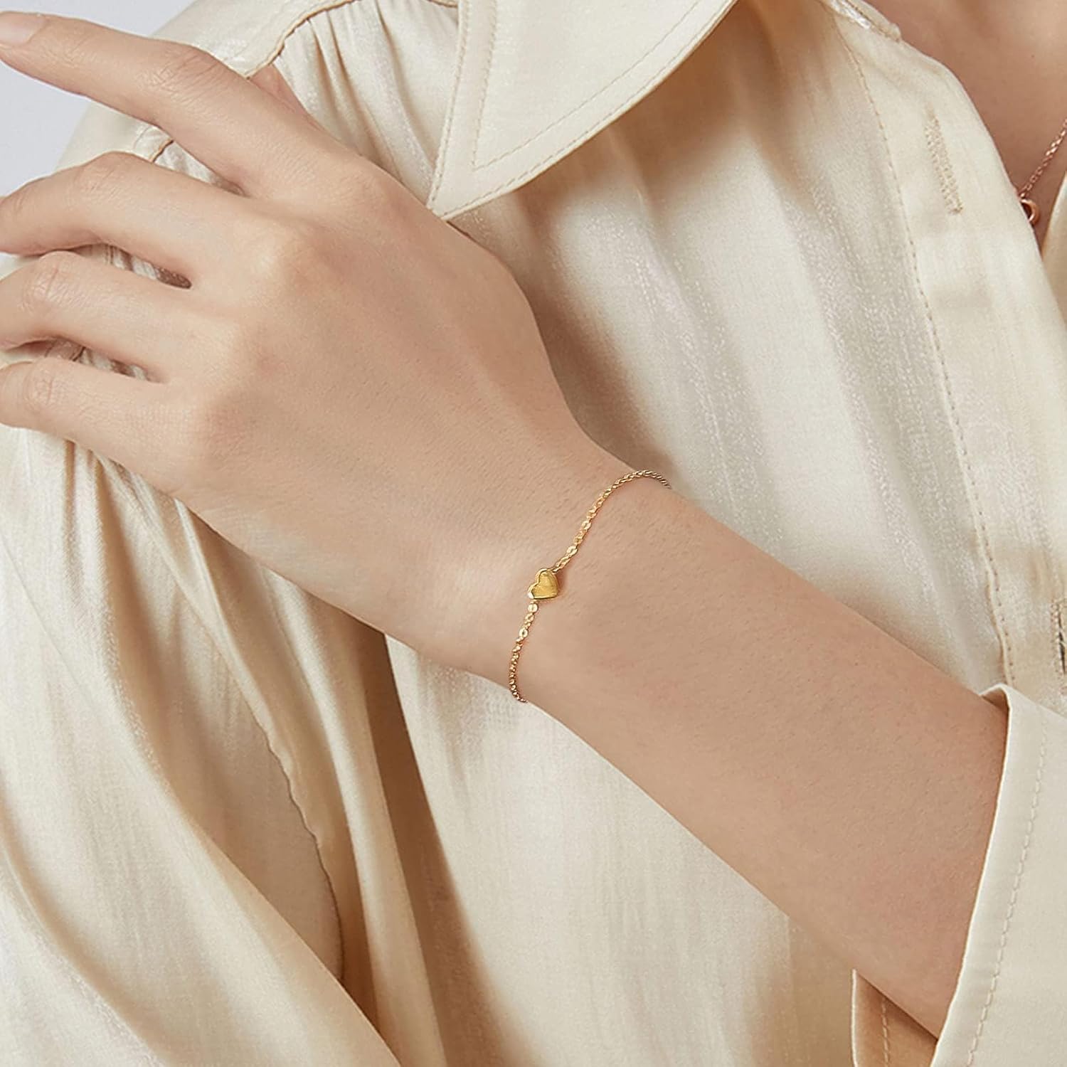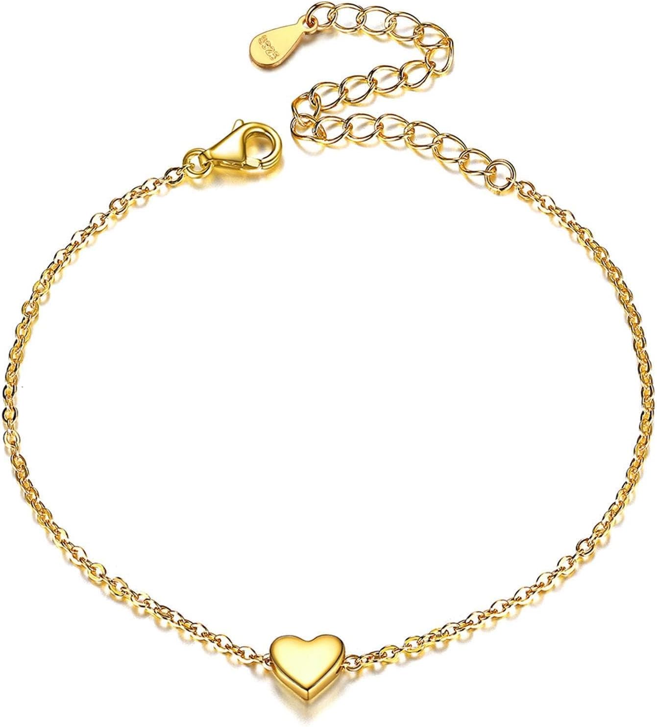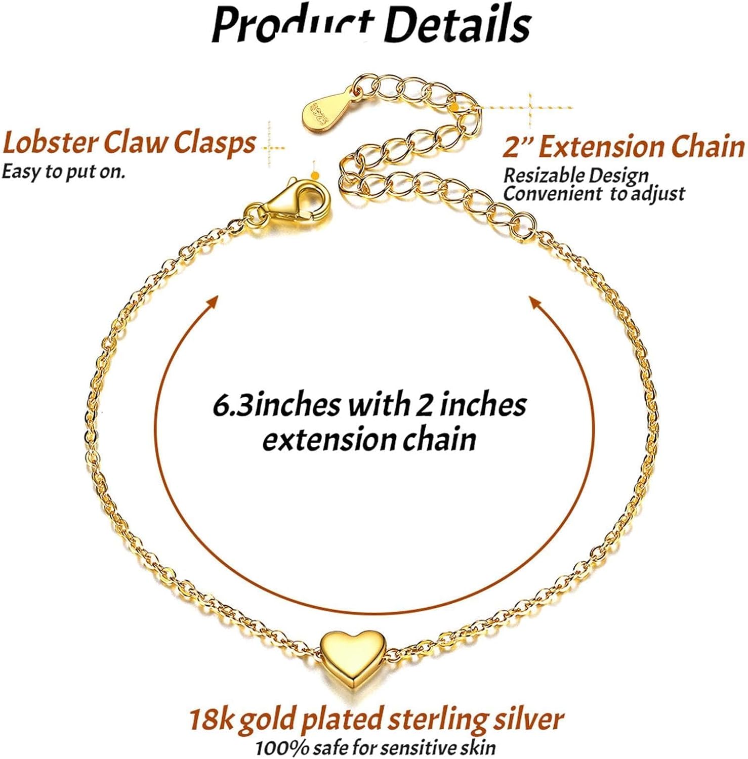 ChicSilver Personalized Tiny Heart/Star/Moon/Dot/Lotus Bracelet, Sterling Silver Dainty Link Chain Bracelet for Women Silver/Gold/Rose Gold(with Gift Box)