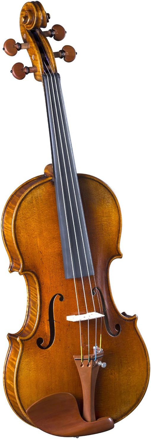 This marvelous new violin is worthy of the finest professional player! The finish is a convincing reproduction of a fine, old masterpiece, with all the marks of wear that would occur in two centuries of use. It has a aged patina that is most pleasing and the color of the varnish is a lovely golden orange. The selected solid spruce top and the well-flamed solid maple back are hand-carved and graduated to perfection, and the resulting tone is rich, free and sonorous, with wonderful carrying power. The trimmings are of finest boxwood in the Hill-style, with black pips and collars. The fingerboard is genuine ebony. Thomastik Dominant strings are fitted and the outfit includes a resilient, well-balanced J. LaSalle LB-40 Brazilwood Premium Student Violin Bow. The case is a lightweight oblong rigid foam model with plush interior and matching blanket. With all these strictly professional features, this outfit is a phenomenal value!