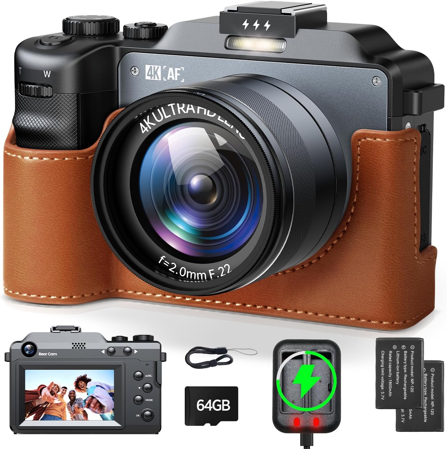Ideal Gift & After-sales service: This 4k YouTube camera is equipped with 64GB card*1, Battery*2, C port cable*1, User Manual*1, UV lens*1, Leather case*1, Lanyard*1, battery charger*1. Simple settings are easy to operate and control, it is an excellent gift for birthdays, Thanksgiving Day, Christmas, or other holidays. We provide 1-year after-sales service, if you encounter any problems with your digital camera, please contact us and we will respond to you within 24 hours