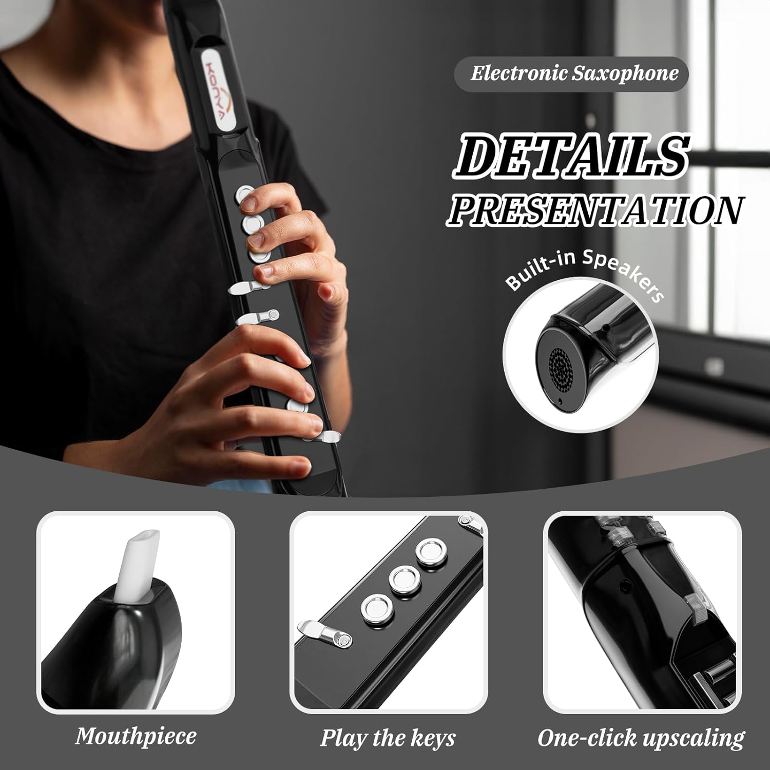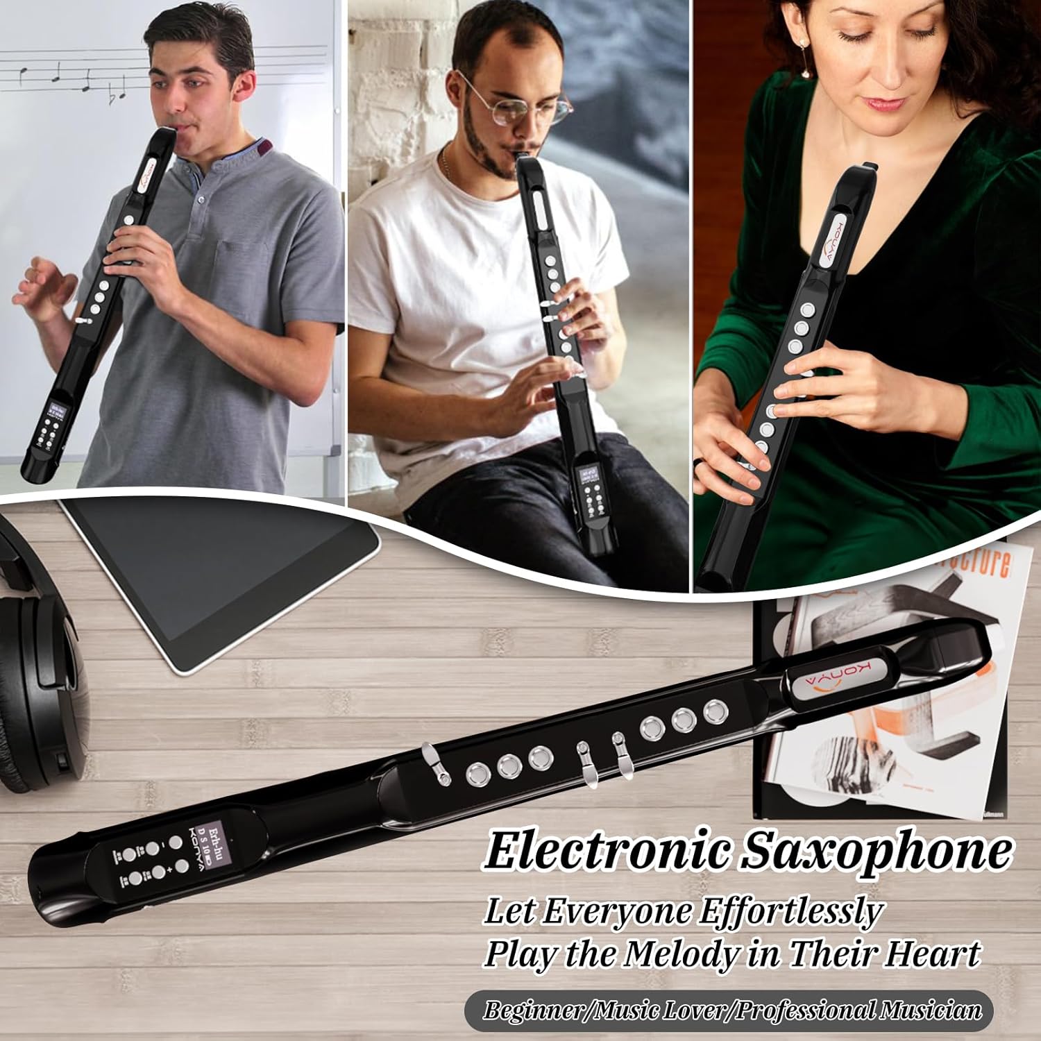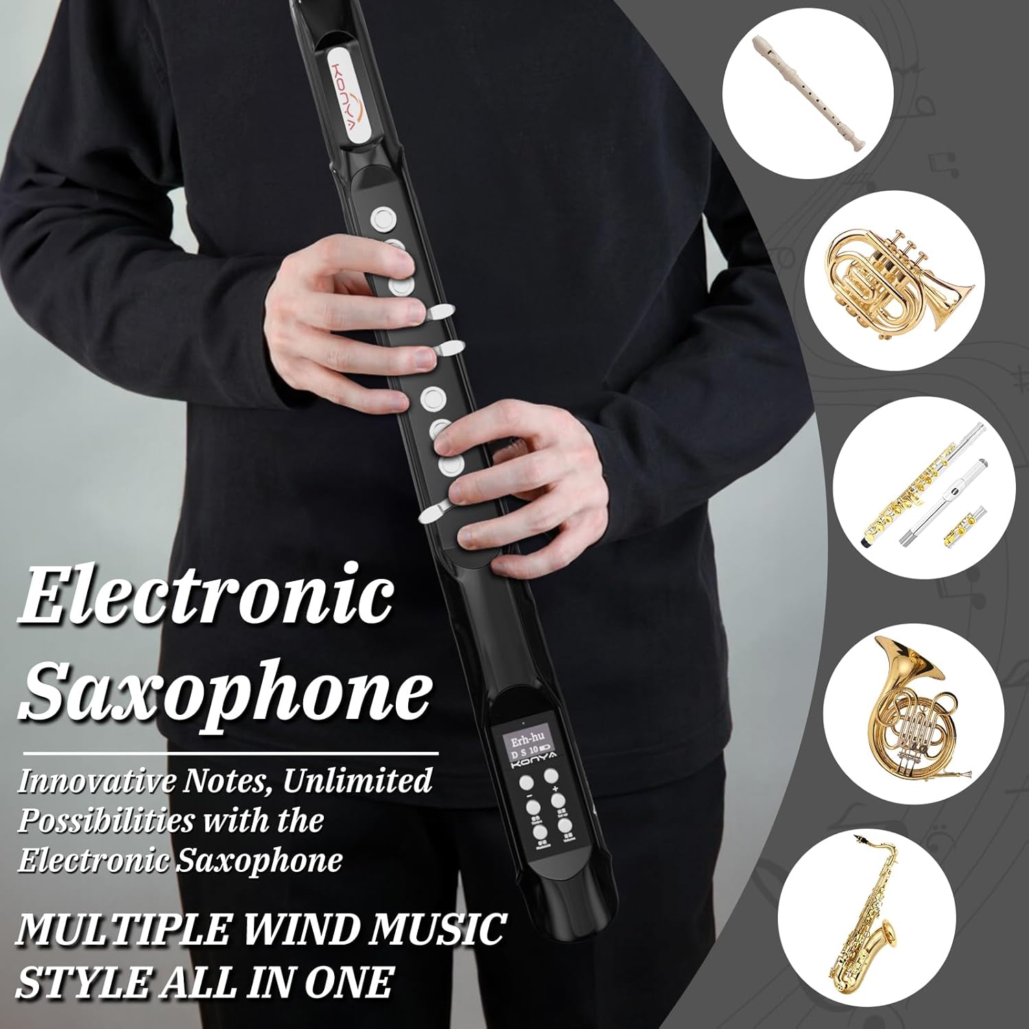 Digital Wind Instrument – Electronic Saxophone 12 Accompaniment 70 Tones 3000mAh, LCD Display, MIDI Connection 6 Key Tone Storage, Long Range Rechargeable Battery (BLACK)