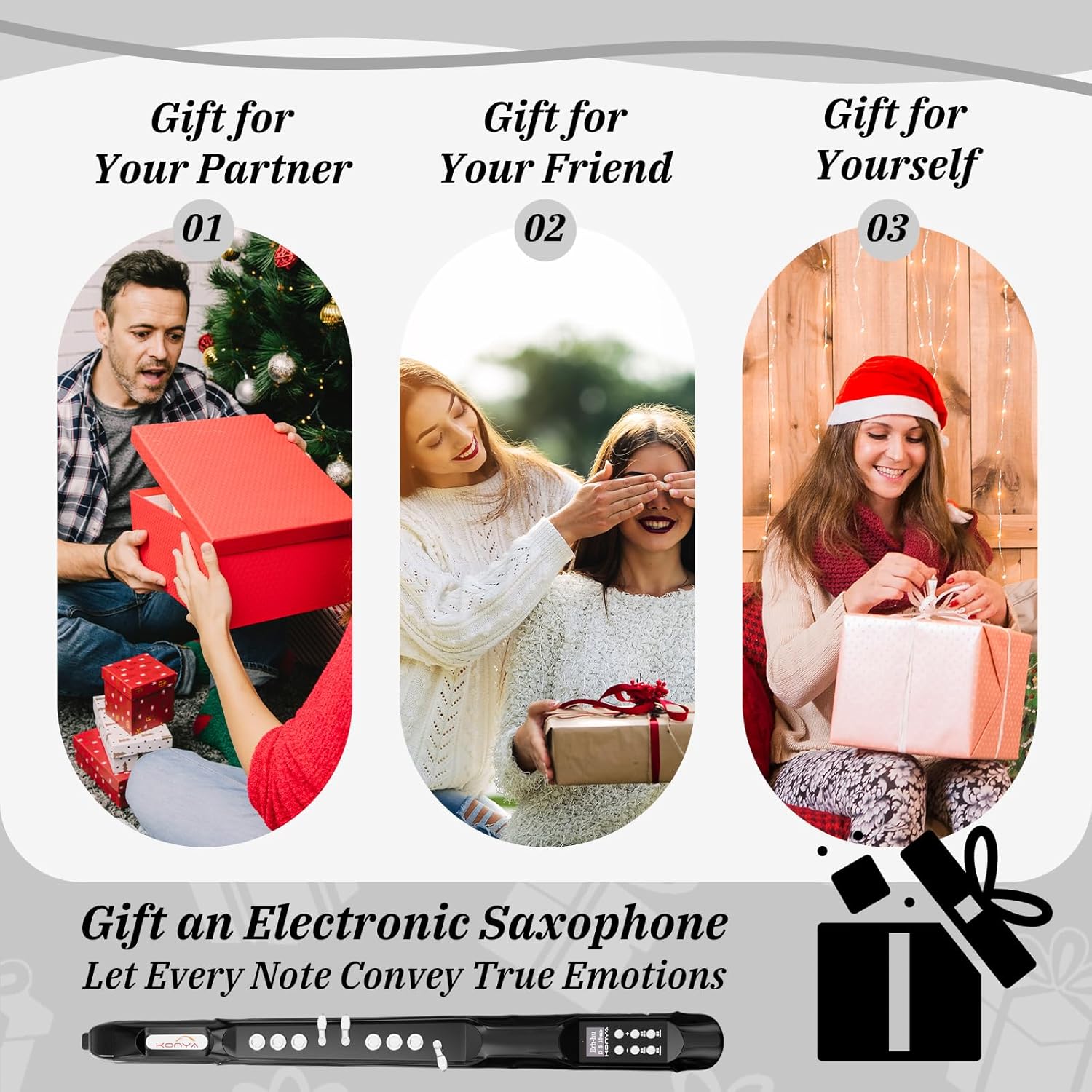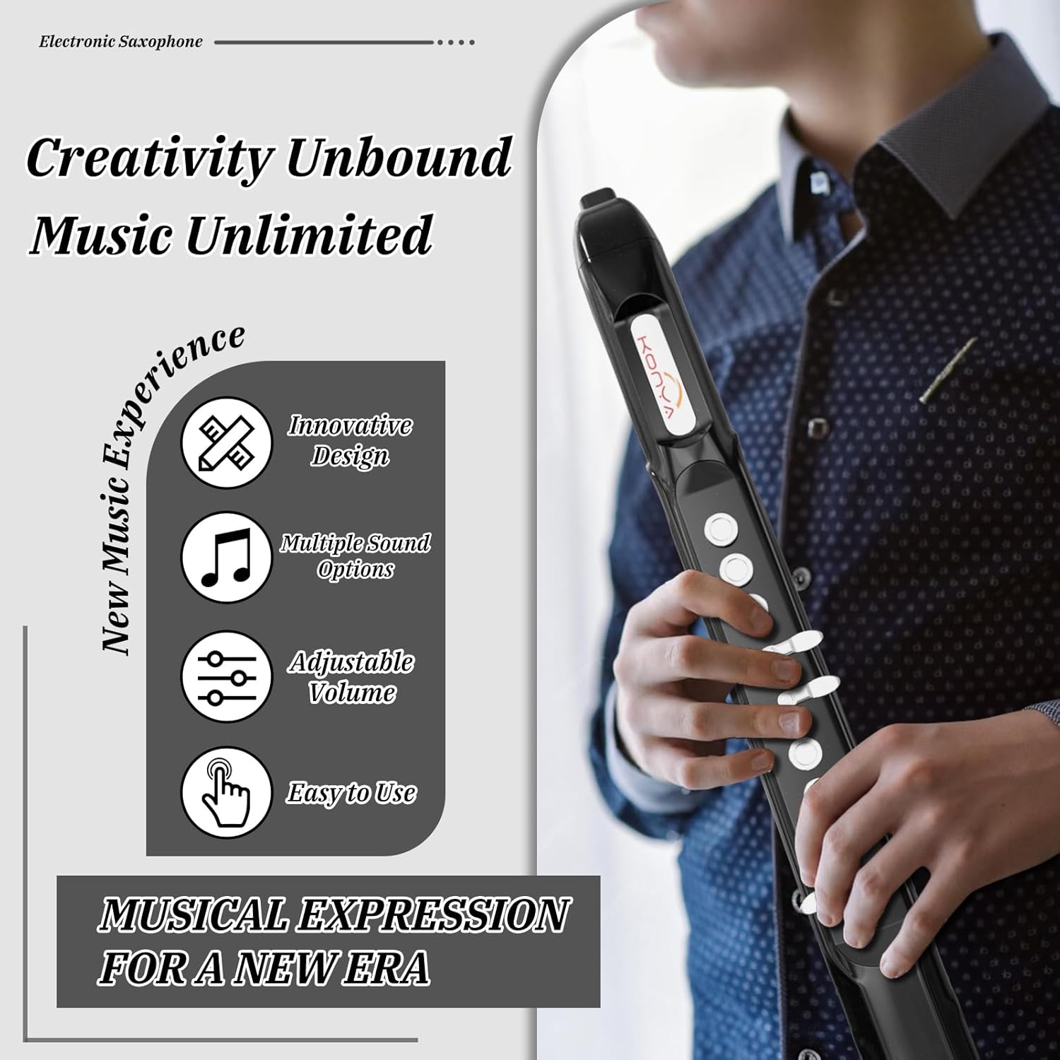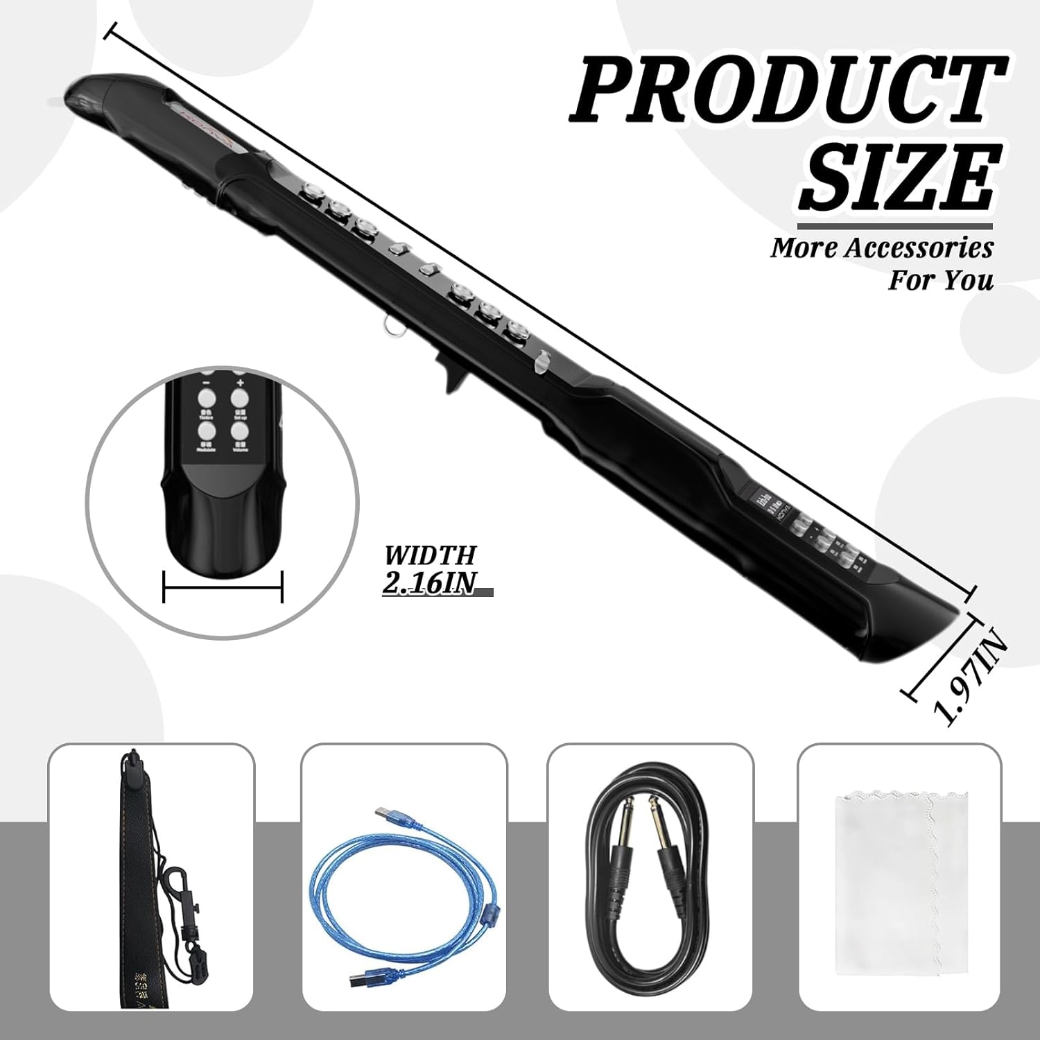 Digital Wind Instrument – Electronic Saxophone 12 Accompaniment 70 Tones 3000mAh, LCD Display, MIDI Connection 6 Key Tone Storage, Long Range Rechargeable Battery (BLACK)