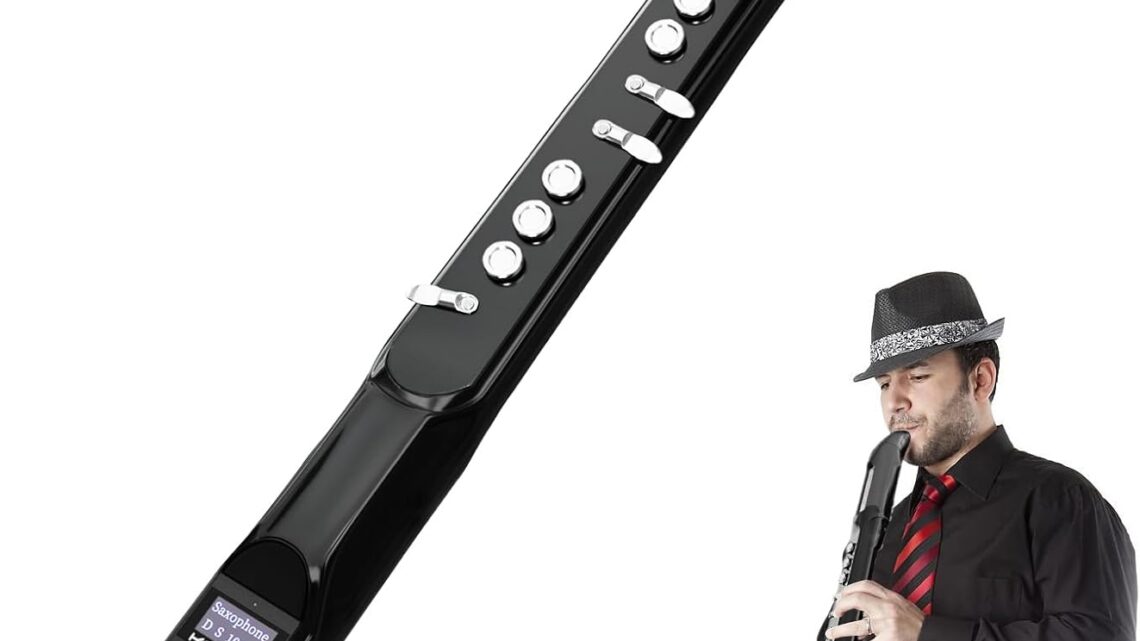 Digital Wind Instrument – Electronic Saxophone 12 Accompaniment 70 Tones 3000mAh, LCD Display, MIDI Connection 6 Key Tone Storage, Long Range Rechargeable Battery (BLACK)