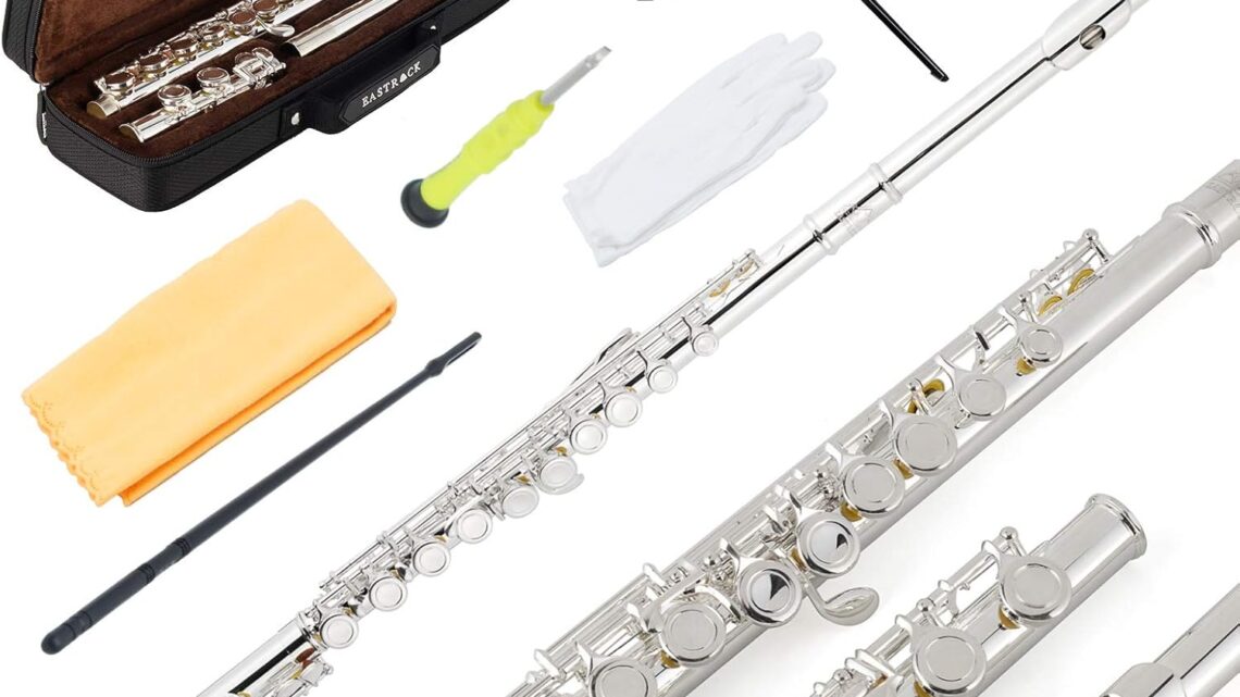 EASTROCK Silver Plated Flute Instrument for Beginner Kids Student,Closed Hole Flutes 16 Keys C Flute with Carrying Case,Stand,Cleaning kit,Gloves,Tuning Rod(Silver Plated)