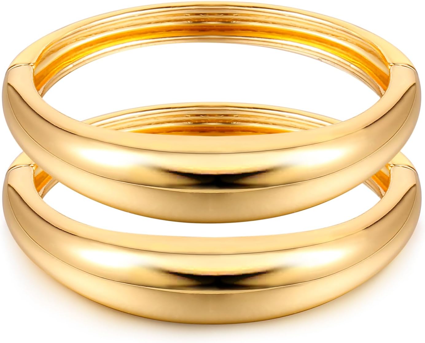 Elegance 11 designs Gold/Silver Cuff Bangle Bracelets For Women Set Chunky Trendy Gold Bracelet Minimalist Hinged Arm Cuff Jewelry Gift 2pcs