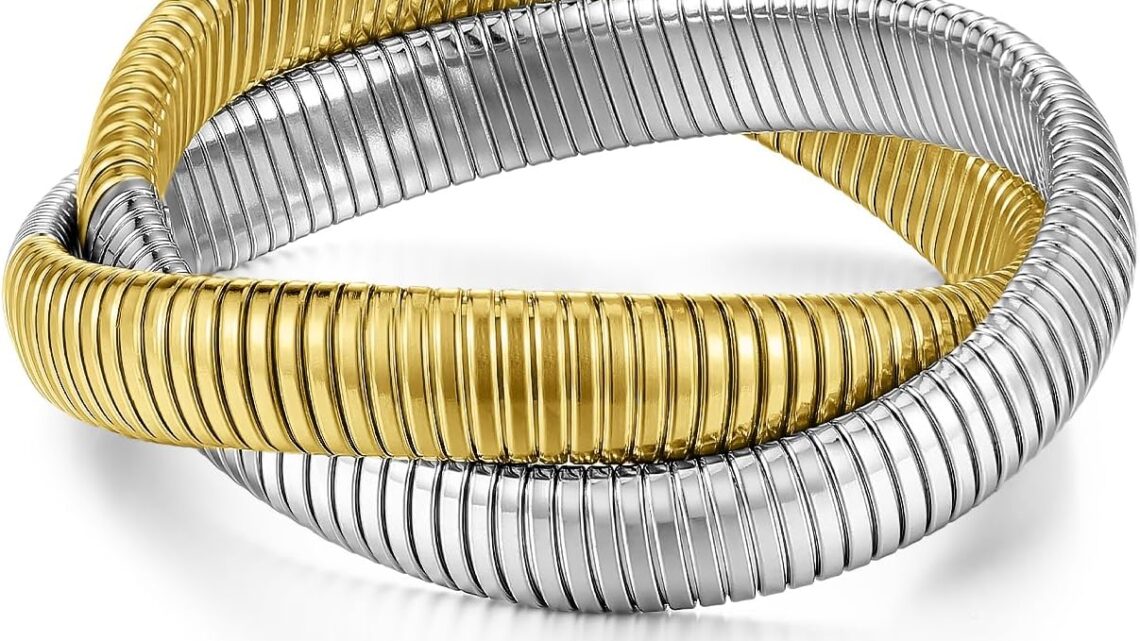 Customers appreciate the bracelets’ style, durability, value, and comfort. They find the bracelets pretty, bold, and chunky. The weight is nice and feels good, making them feel like good quality. Many customers also like the stretchiness and tarnish resistance.