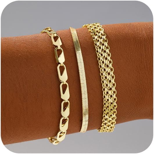Gold/Silver Bracelets for Women,14K Real Gold Plated Bracelets Stack Trendy Jewelry Sets Stackable Snake Chain Figaro Paperclip Link Chain Adjustable Bracelet Pack Jewelry for Women