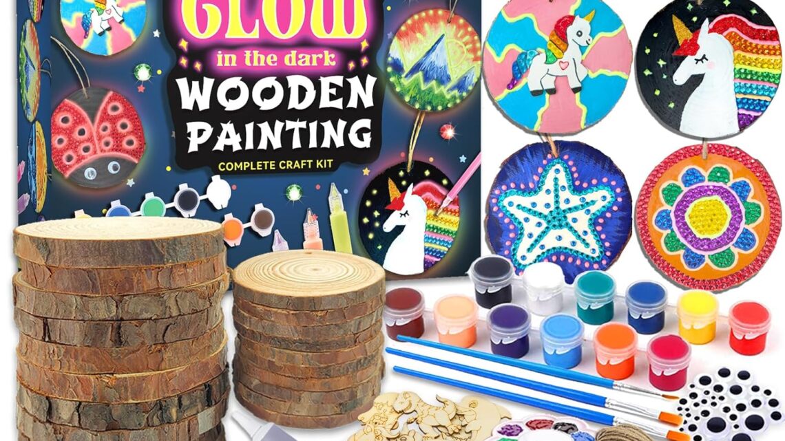 Kids Wooden Painting Kit-Glow in The Dark-Arts & Crafts Gifts for Boys Girls Ages 5-12-Wood Slice Craft Activities Kits – Creative Art Toys for 5, 6, 7, 8, 9, 10, 11 & 12 Year Old Kids