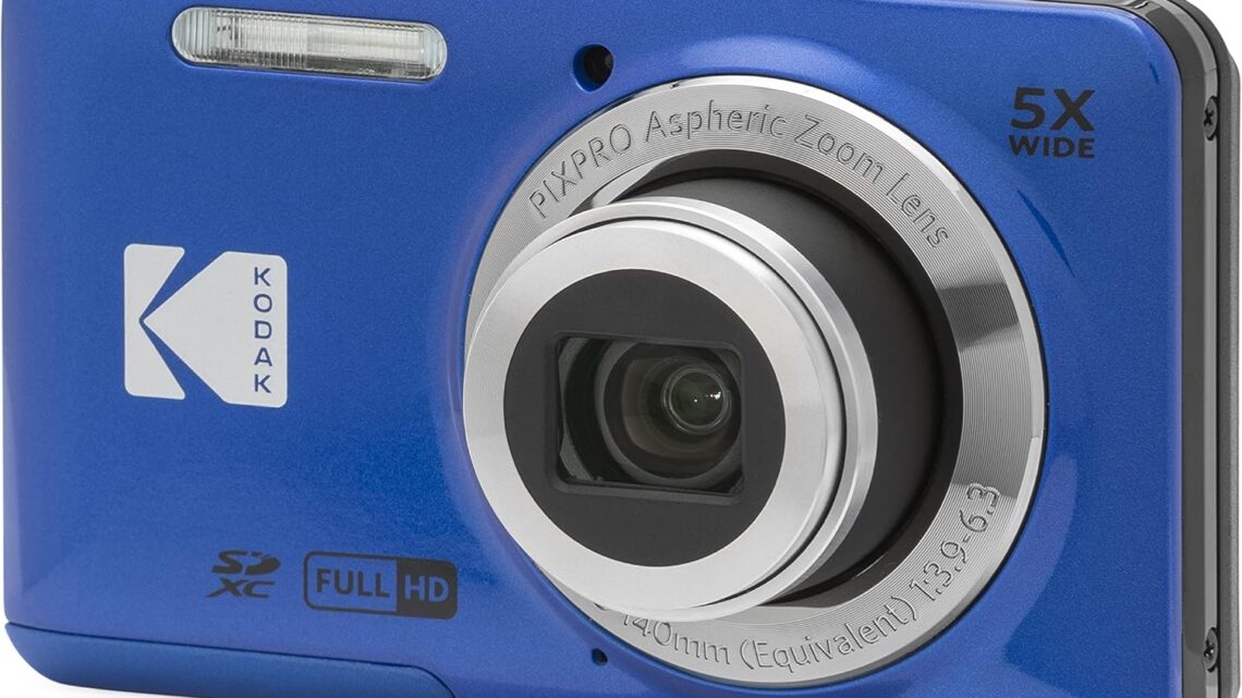 KODAK PIXPRO FZ55-BL 16MP Digital Camera 5X Optical Zoom 28mm Wide Angle 1080P Full HD Video 2.7″ LCD Vlogging Camera (Blue)