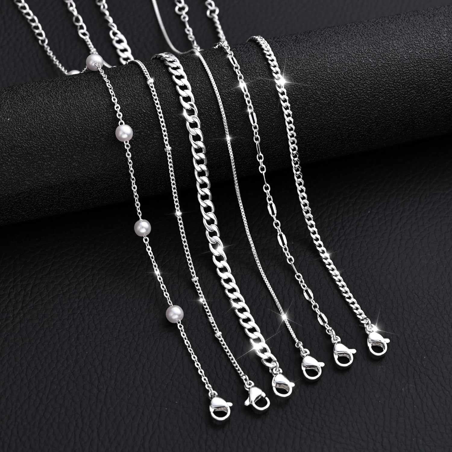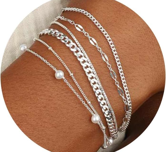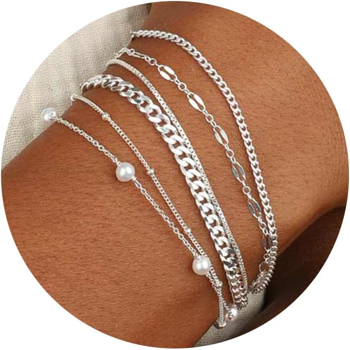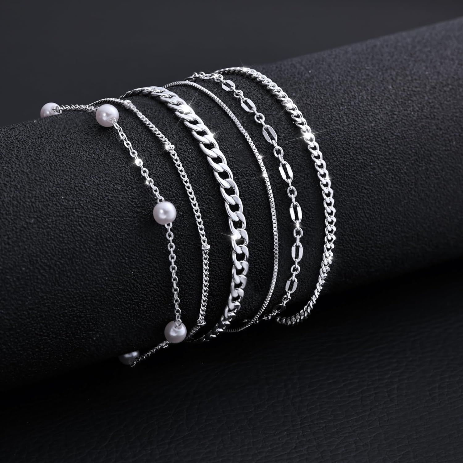 MBW Silver Bracelets for Women, Dainty Silver Bracelets for Women Set 14K Silver Bracelet Stack Waterproof Jewelry for Women Trendy Minimalist Simple Small Thin Bracelet Set for Women Gift