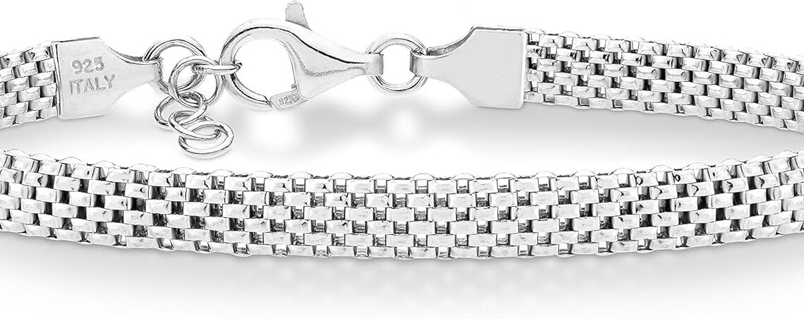 Miabella 925 Sterling Silver Italian 5mm Mesh Link Chain Bracelet for Women, Made in Italy