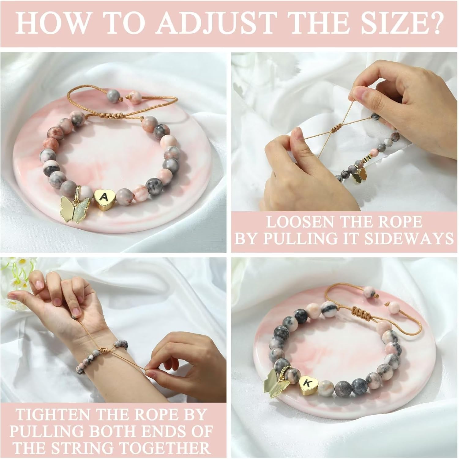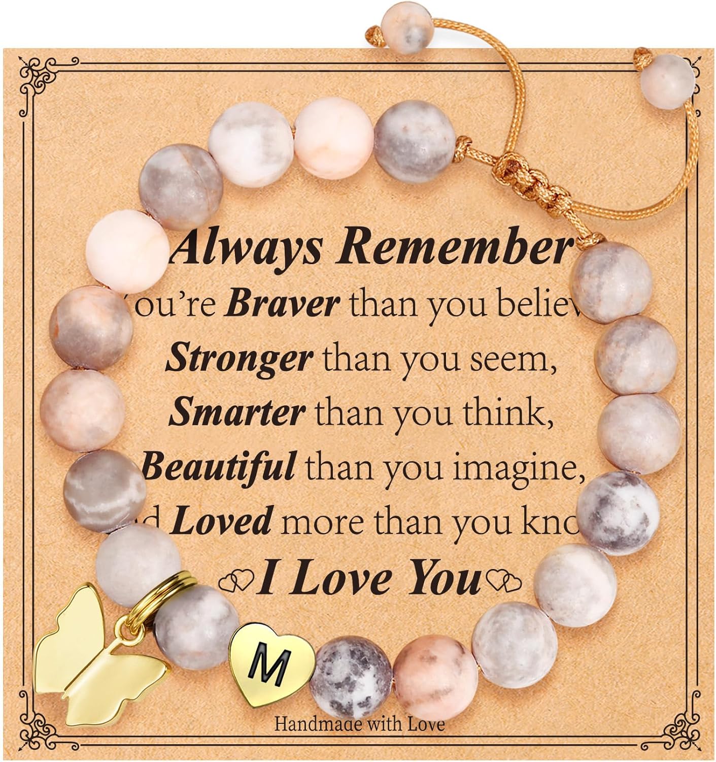 MONOZO Initial Bracelets for Women Jewelry Gifts – Natural Stone Heart Initial Sunflower Butterfly Bracelets for Women Gifts Birthday Valentines Christmas Jewelry Gifts for Women Friends Sister Trendy
