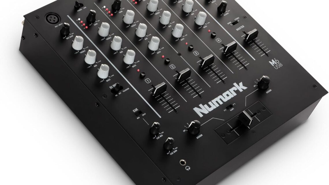 Numark M6 USB – 4-Channel DJ Mixer with Built-In Audio Interface, 3-Band EQ, Microphone Input and Replaceable Crossfader with Slope Control,Silver/Black