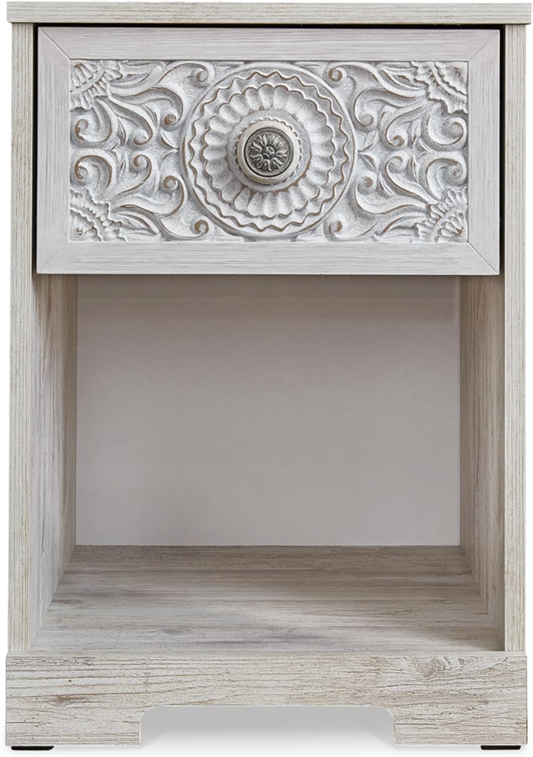 Signature Design by Ashley Paxberry Bohemian 1 Drawer Nightstand with Open Cubby, 22.09″ Tall, White