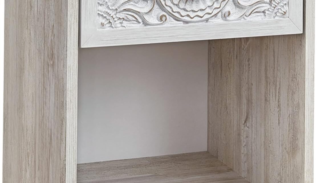 Signature Design by Ashley Paxberry Bohemian 1 Drawer Nightstand with Open Cubby, 22.09″ Tall, White