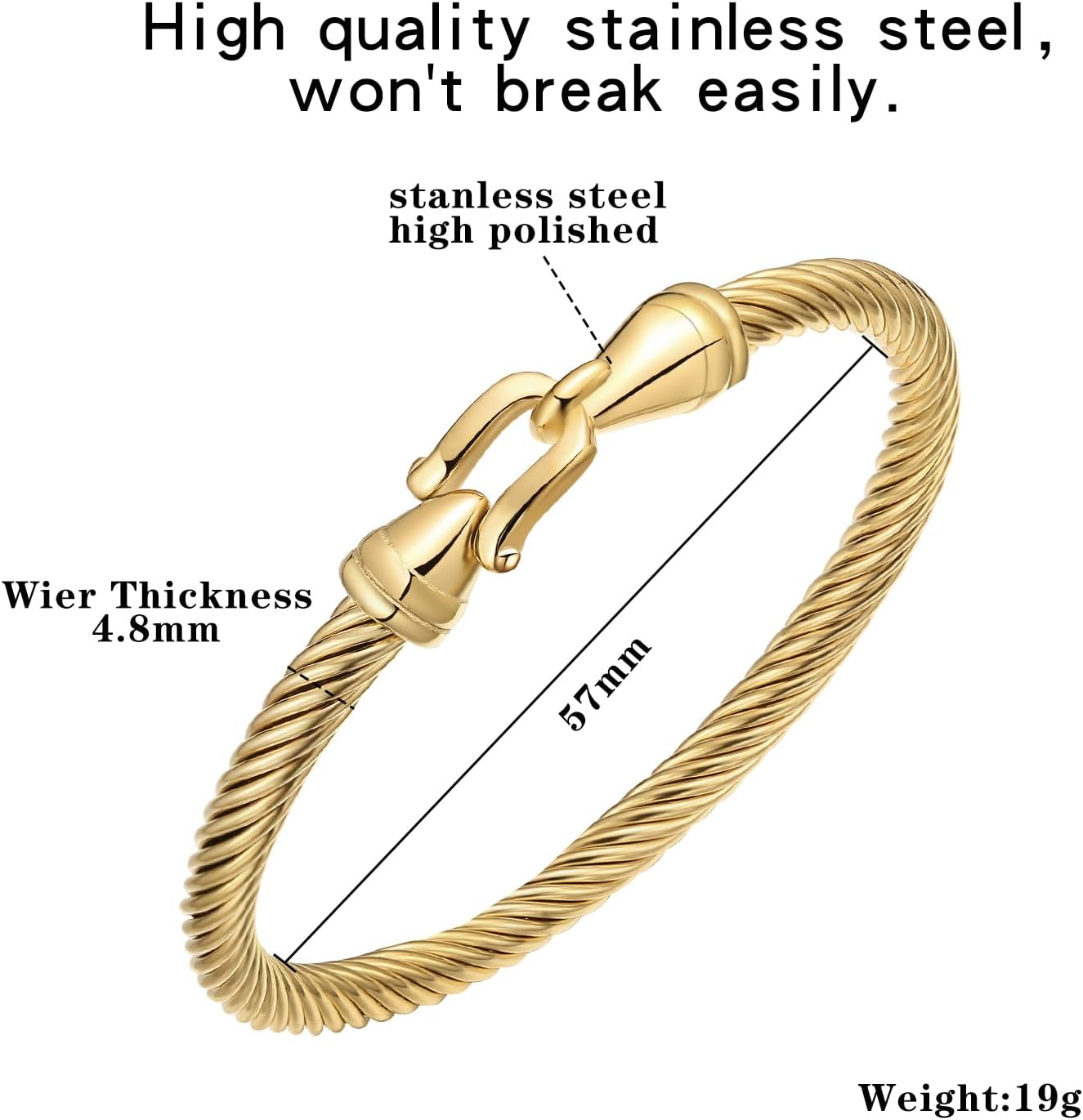 Stainless Steel Twisted Cable Wire Bracelets with Hook Adjustable Cuff Bangle Bracelet Vintage Jewelry Gift for Women