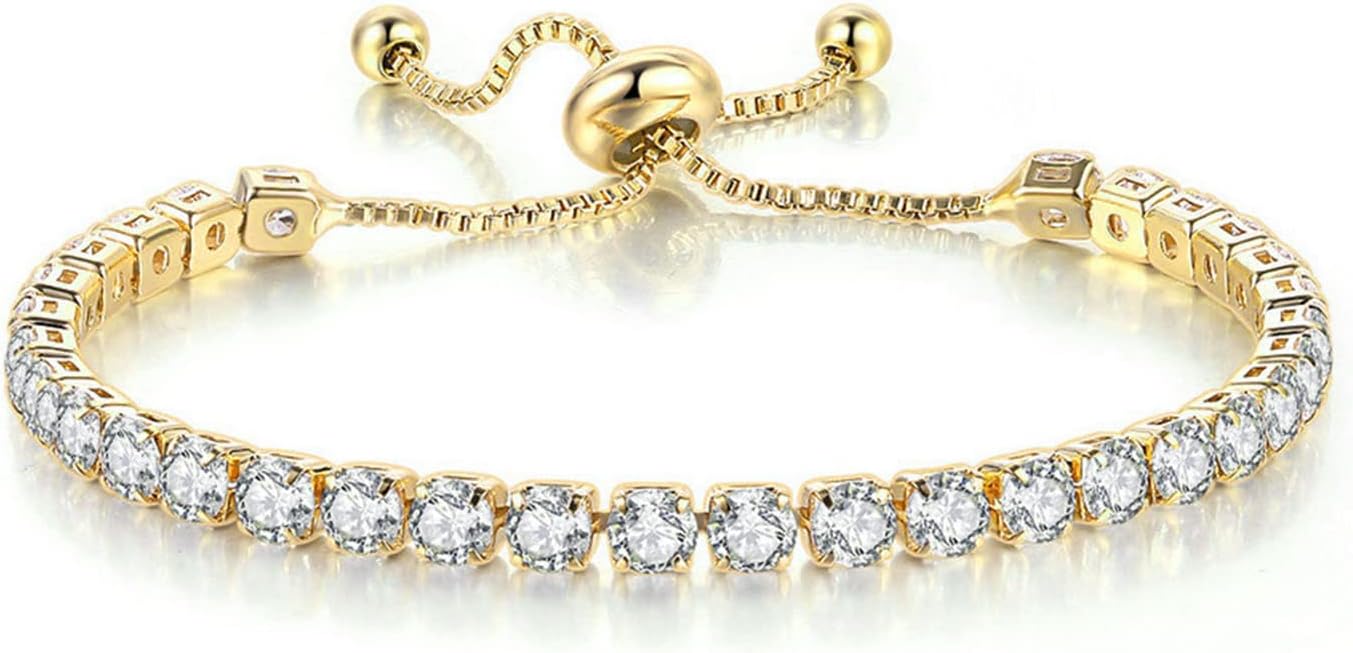 Tennis Chain Rhinestone Beads Slider Bracelet 14K Gold Silver Plated Adjustable Crystal Seed Bracelet for Women Wedding Party Geometric Jewelry Gift