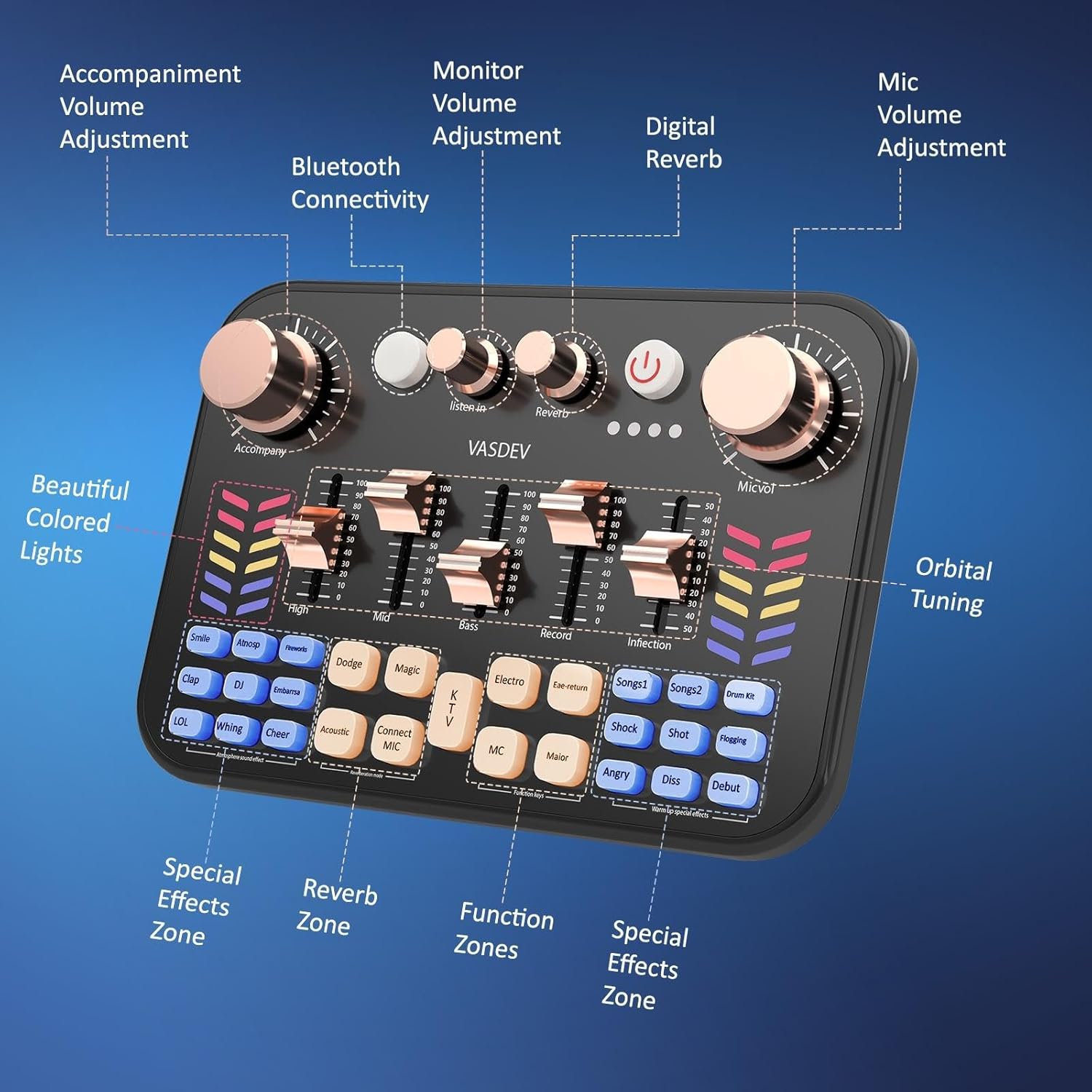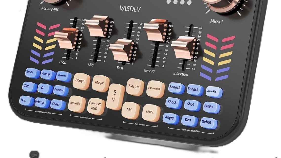 VASDEV Podcast Soundboard Equipment Bundle With Bluetooth Voice Changer DJ Controller for Live Streaming Singing and Gaming