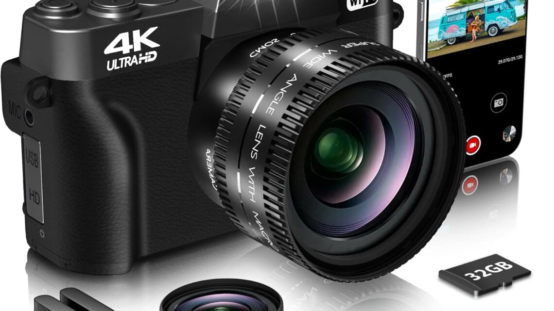 【4K Ultra HD High Resolution Digital Camera with 32GB Micro SD Card 】: 4k vlogging camera equipped with 52mm wide angle & macro lenses and supports 16X digital zoom to get closer focus from far away and recorder a wider range of scenery