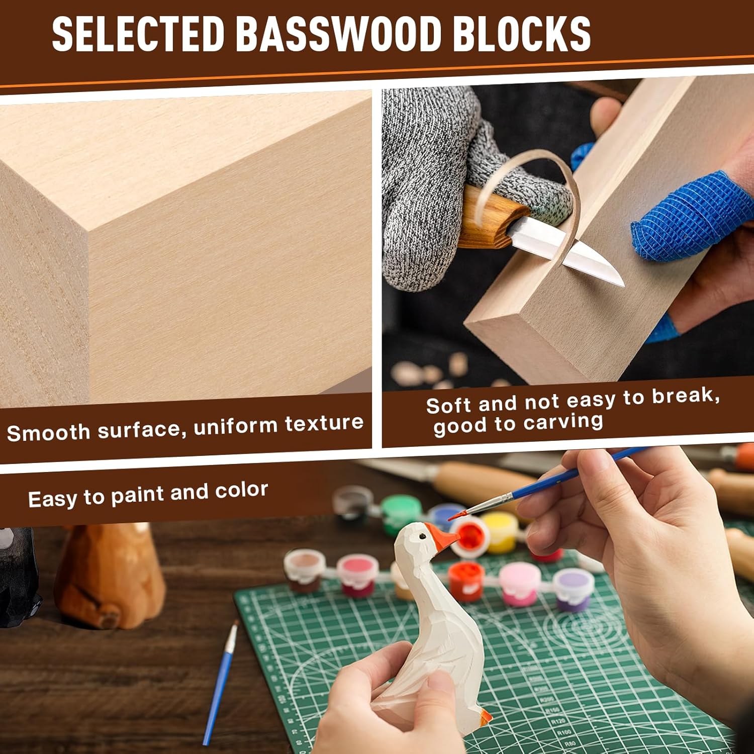 【Best Choice for Wood Carving】: Our basswood carving blocks are soft and not easy to break. They are the easiest to cut and paint of all wood types, making them the best choice for creating exquisite wood carving crafts.