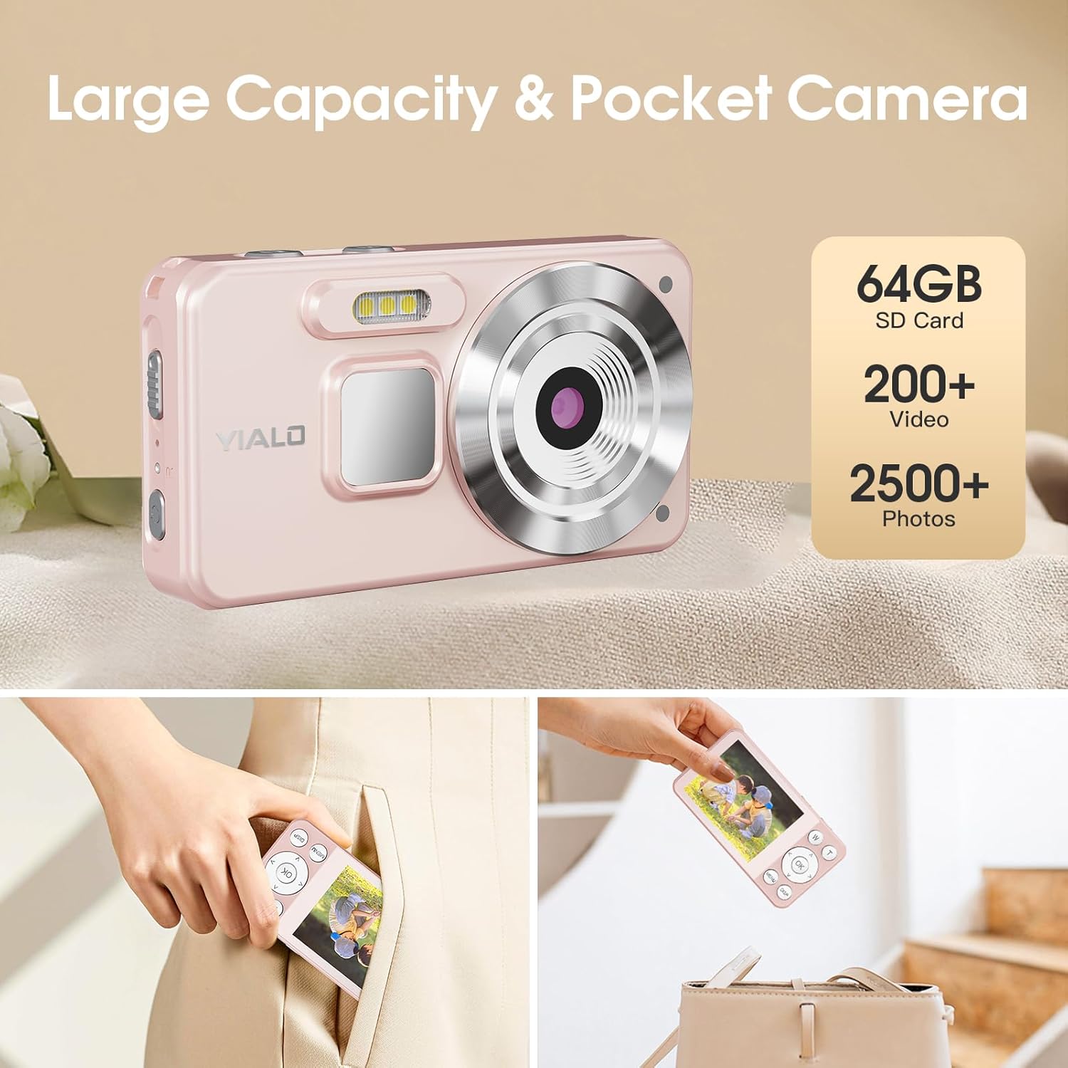 【Large Capacity & Small Camera】Kids camera comes ready with 2000mAH high-capacity rechargeable batteries and a 64GB SD card for uninterrupted shooting, which can fulfill your daily photo needs. In addition, we offer comprehensive after-sales service and 24/7 customer support for all post-purchase troubleshooting, problems and technical help.